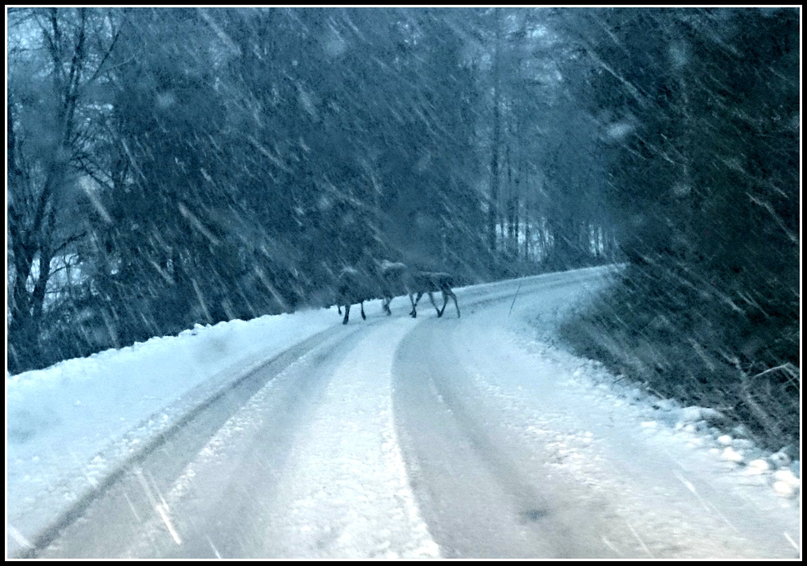 Inte trodde jag i min vildaste fantasi att älgar var så förtjusta i mig att de till och med vill träffa mig två gånger per dag och inte nog med det! Det var otroligt samma lilla älgfamilj på tre stycken som väntade in mig, både på vägen till jobbet..