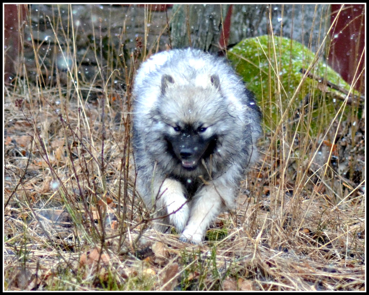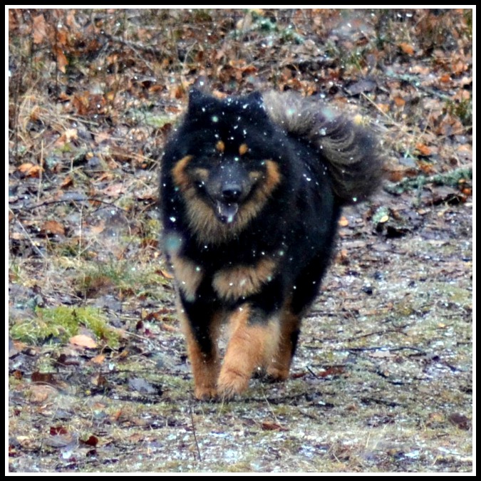 Efter en stund nere vid Fegensjön i både blåst och snö så vände vi tillbaka och ovanför backen stod en vacker tjej och väntade på sin matte i snöfallet, mitt fina ❤