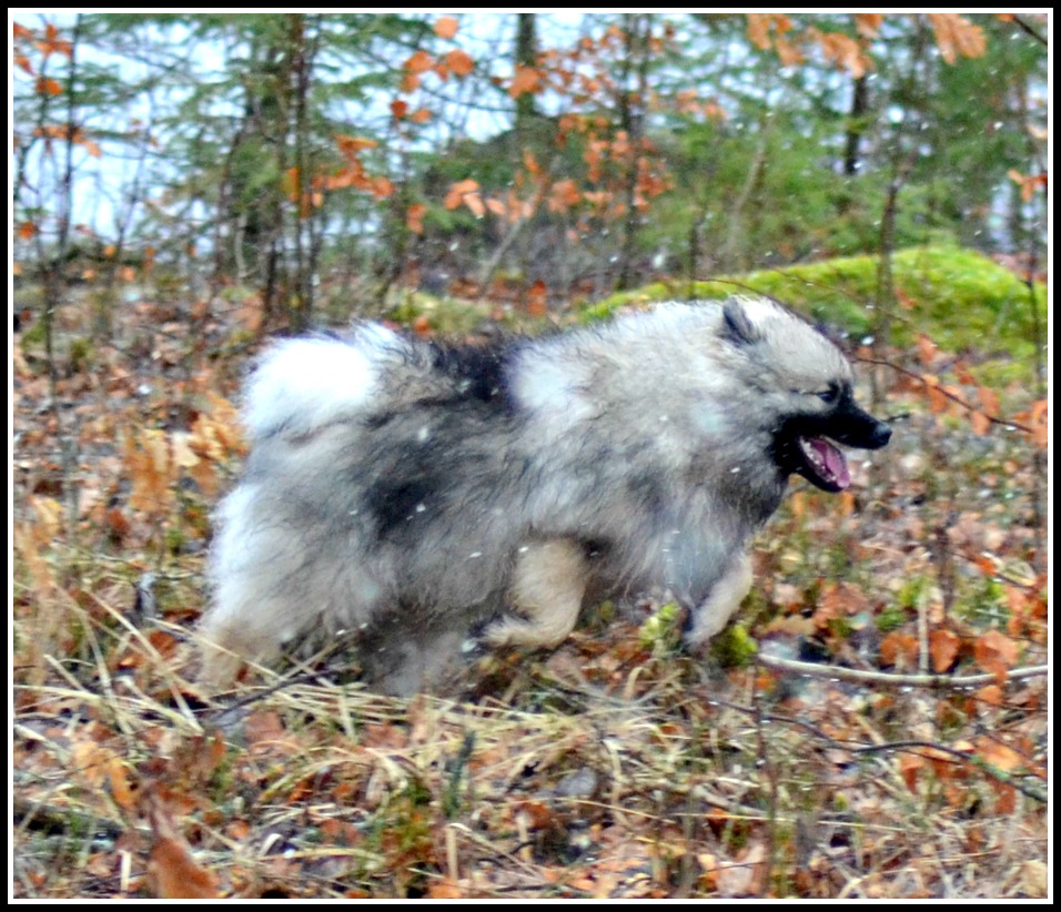 Ja hon hade ju förmånen att få gå lös den mesta tiden, till skillnad från våra tjejer som vi hade säkert kopplade i de mest djurtäta områdena men när vi kom ner till sjön så fick även de en stunds fri lek. Detta som synes till stor glädje för lilla Fia för då fick hon ju springa med 2/3 av de stora tjejerna..