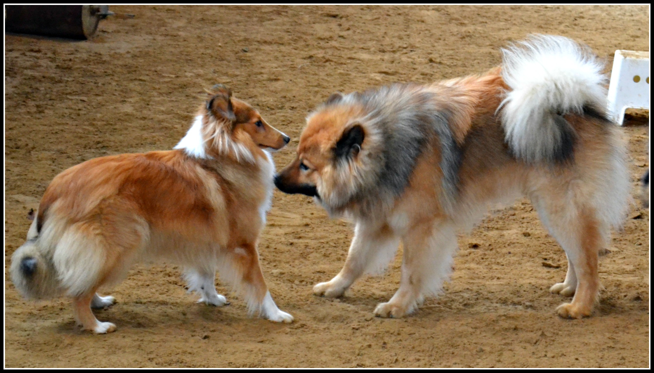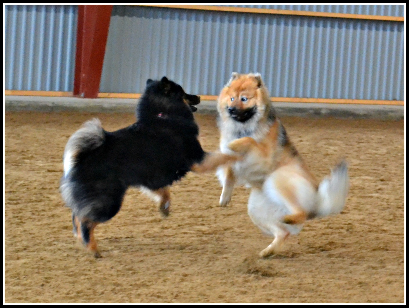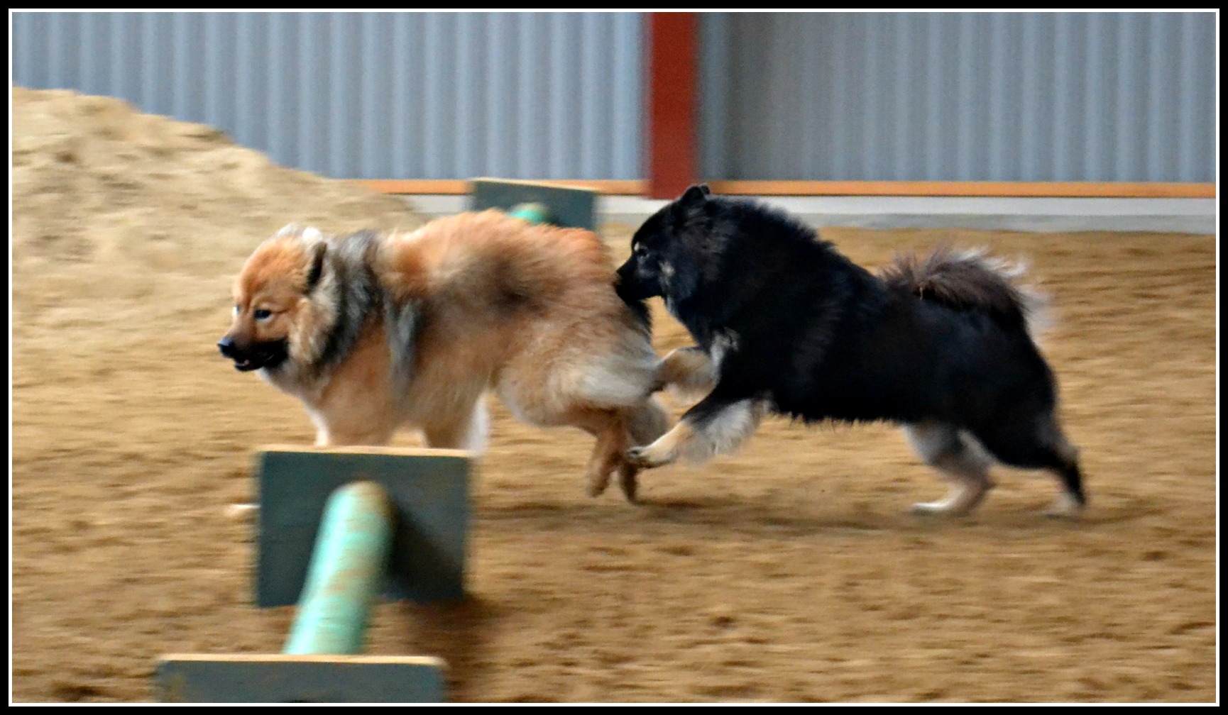 Hundarna var jätteduktiga på detta trots störningar men vissa var bara tvungna att ta tillfället i akt och leka lite också, syskonbus med Bentley & Freja 😉