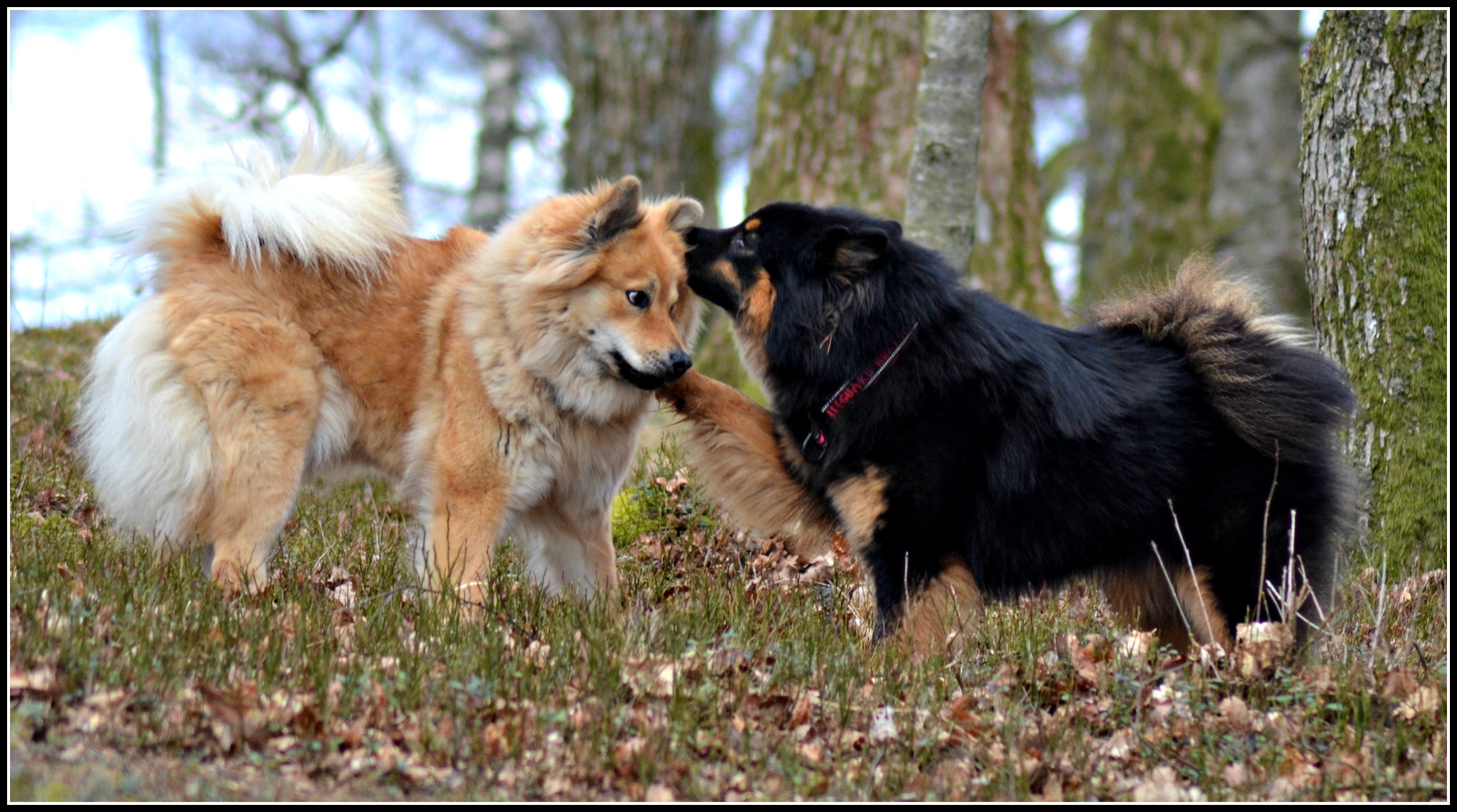 Hihi, ja en ganska talande bild tycker jag :). Men tydligen fick Jill lite dåligt samvete över att hon dissade Tindra på detta sätta och räckte snabbt ut en förlåtande tass..