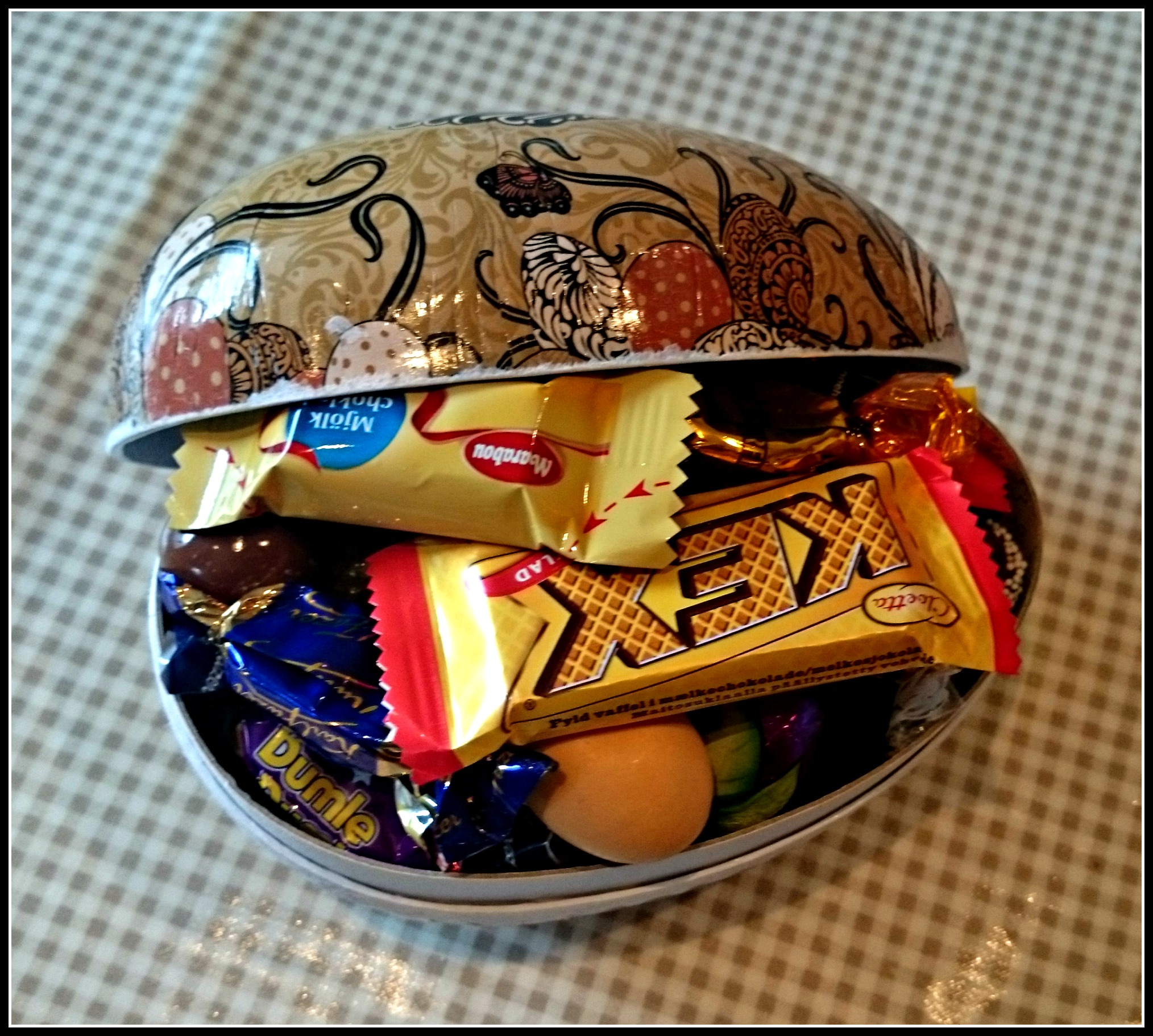 Ett knökfullt påskägg med massor av choklad i olika sorter, tack snälla Linda ❤