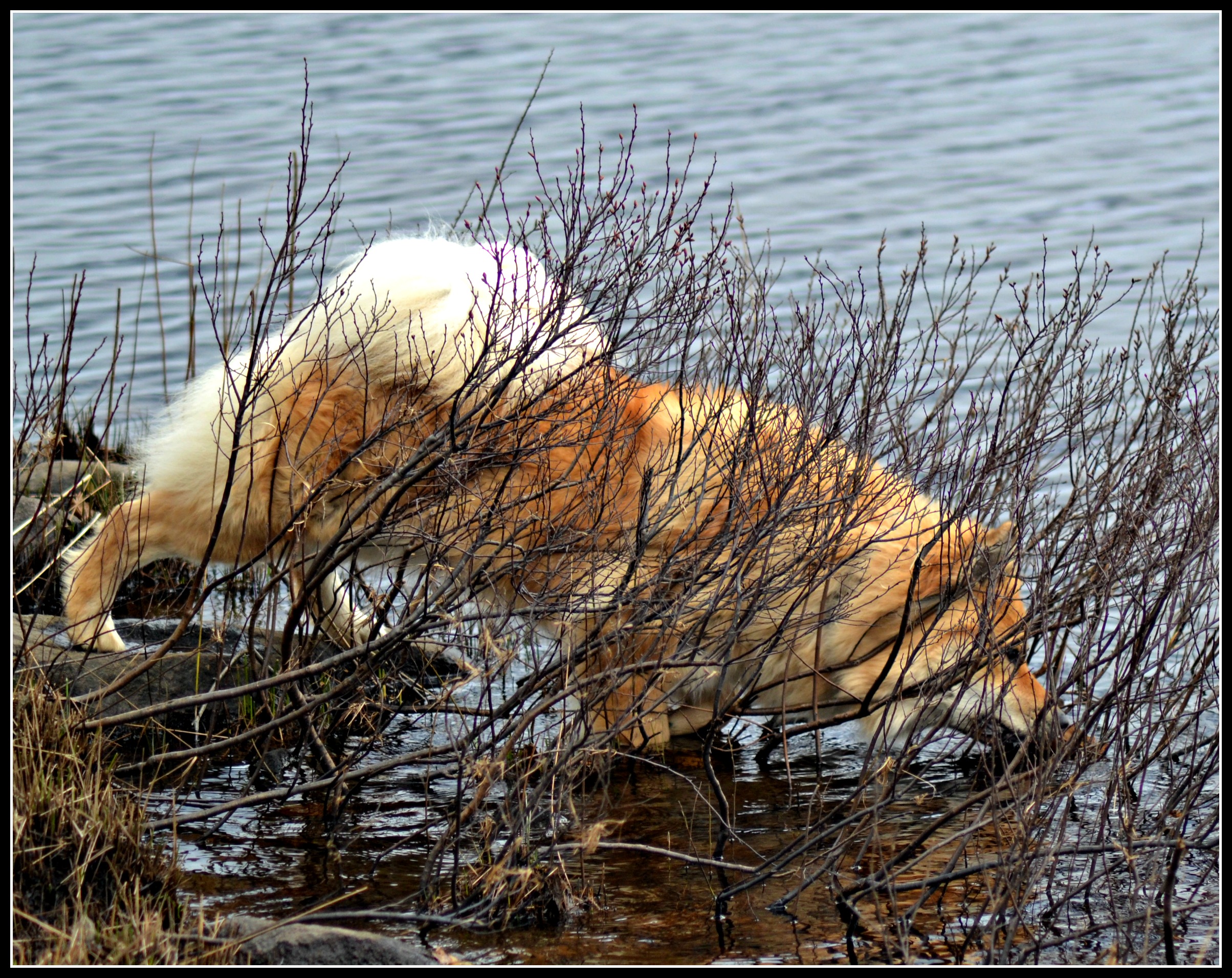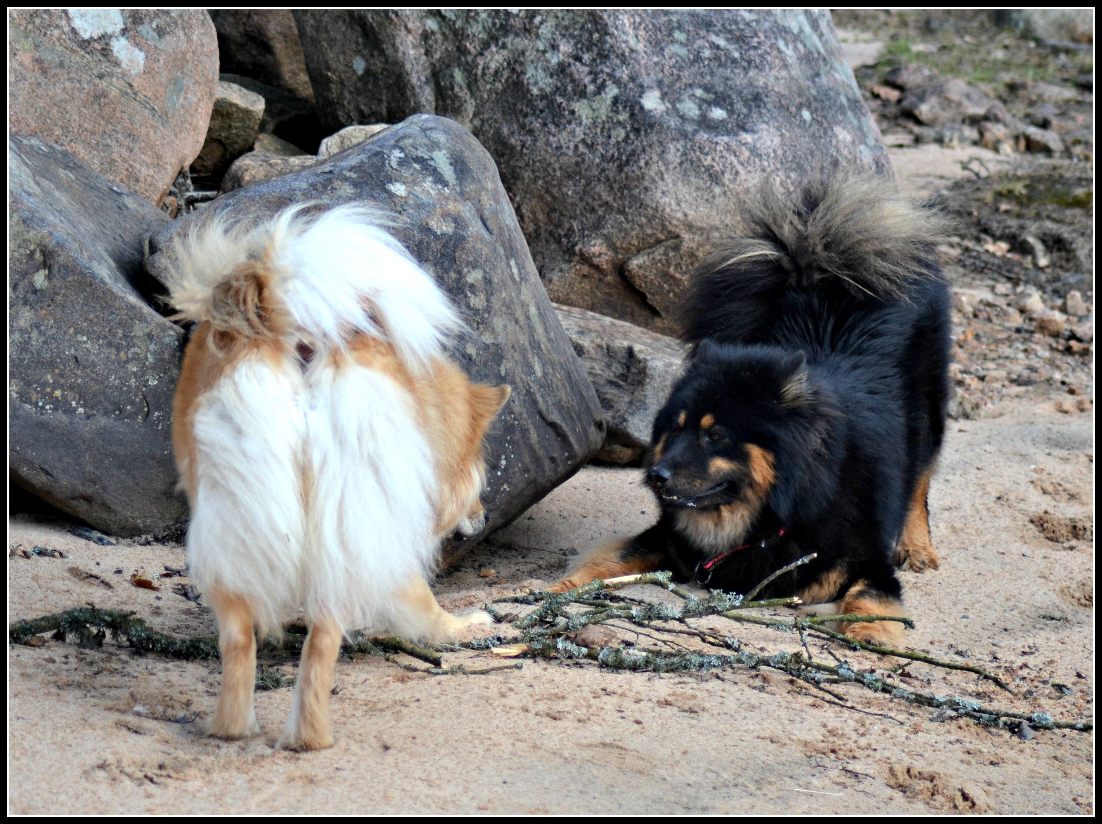 Ja man kan inte annat än att le åt deras tokigheter men en av dem bjöd även på ett gapskratt, ja tala om att kunna bli väldigt lång i kroppen ;). Det är såklart tossiga Tindra jag pratar om och hennes problem med att fånga en sak bland buskarna i sjön som fångade hennes intresse..