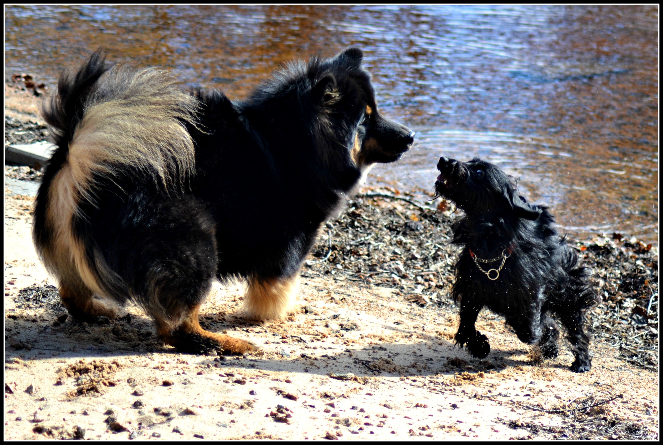 Påskafton annars var jättemysig här på alla sätt! Vi hade goa vännerna Anette & Lars här på middag igår kväll och innan dess så rastades tjejerna i solskenet på stranden tillsammans med Carina & Livia, och den sistnämnda blev minst sagt glad över att få träffa sina kompisar igen och gav sig genast i kast med att locka dem till lek 🙂