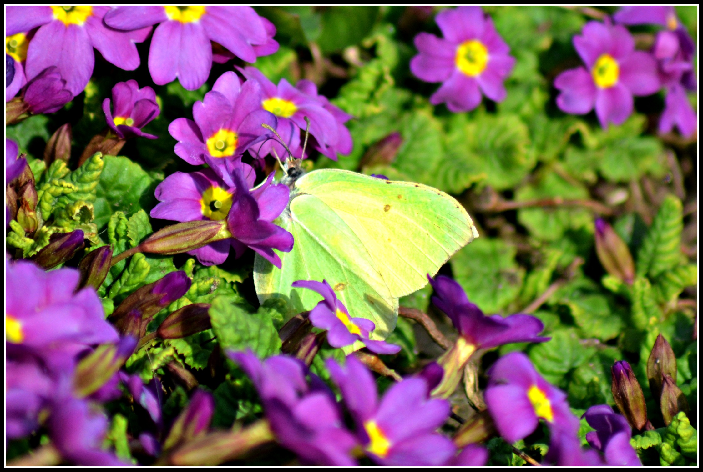 Och om någon nu säger att våren inte riktigt har kommit så ha de fel för idag fotade jag det ultimata vårtecknet, Citronfjärilen 🙂