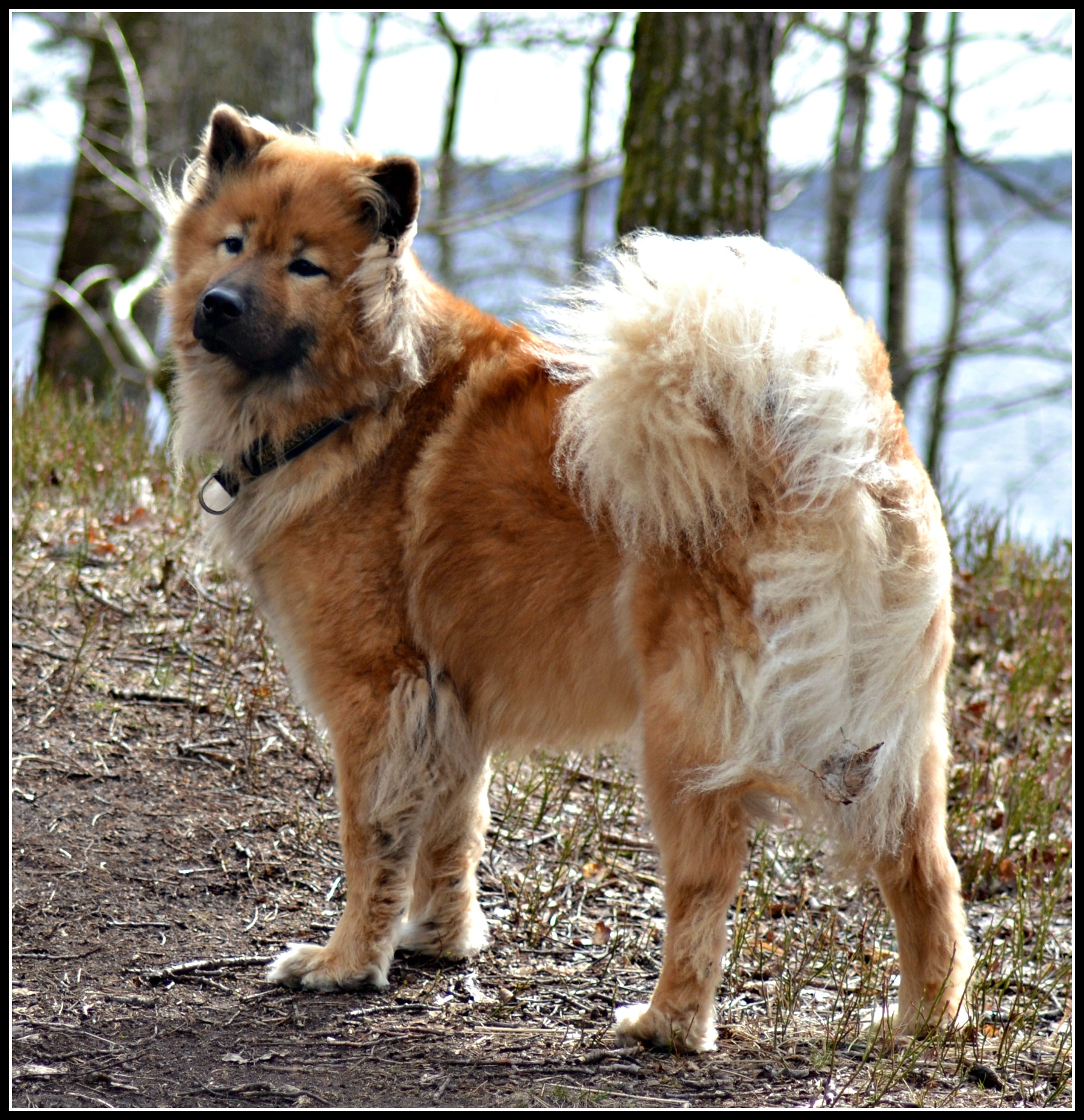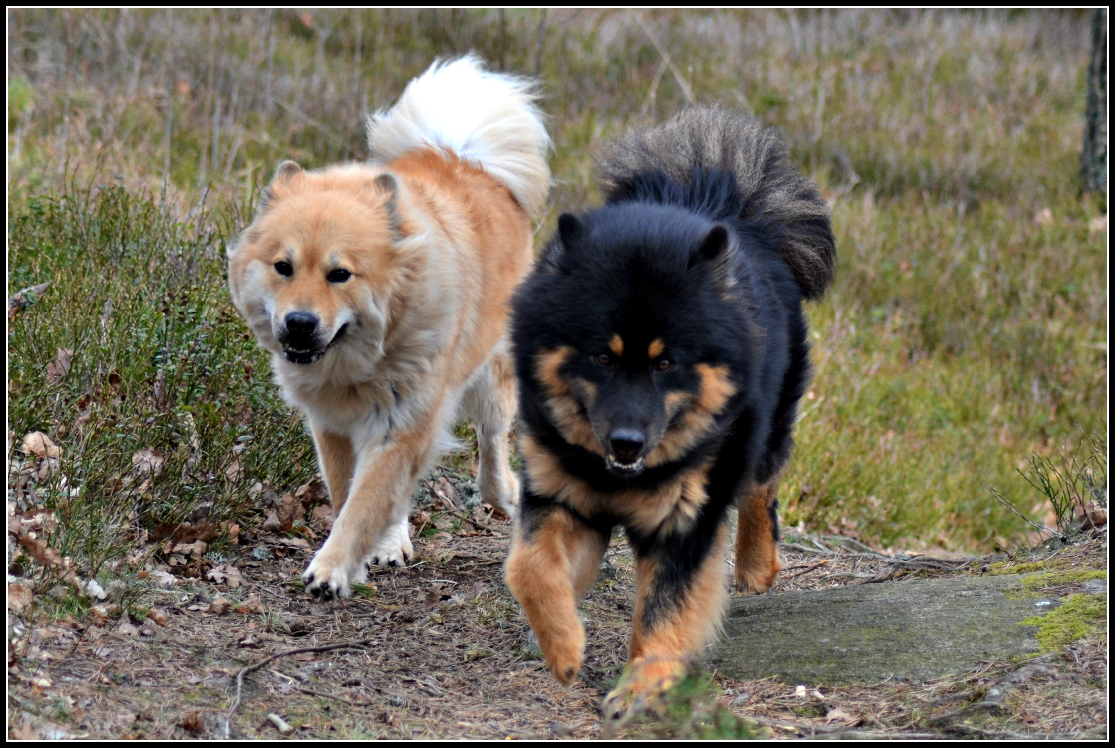 Som trots blåsten inte var den skönaste av promenader där denna gång men ändå helt okej. Och medans jag höll hårt i kepsen så hittade Tindra & Zelda nåt mycket spännande och det i samma träd..