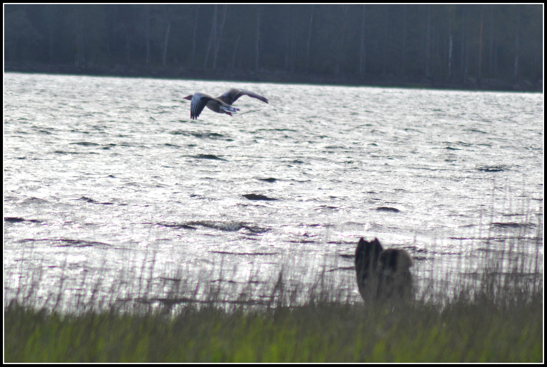 Ja blicken var lång efter denna Kanadagåsens snabba sorti :). Men hennes längtan verkar inte alls delas av de andra två, nej den ena nöjde sig mer än väl med att bara studera detta spektakel..