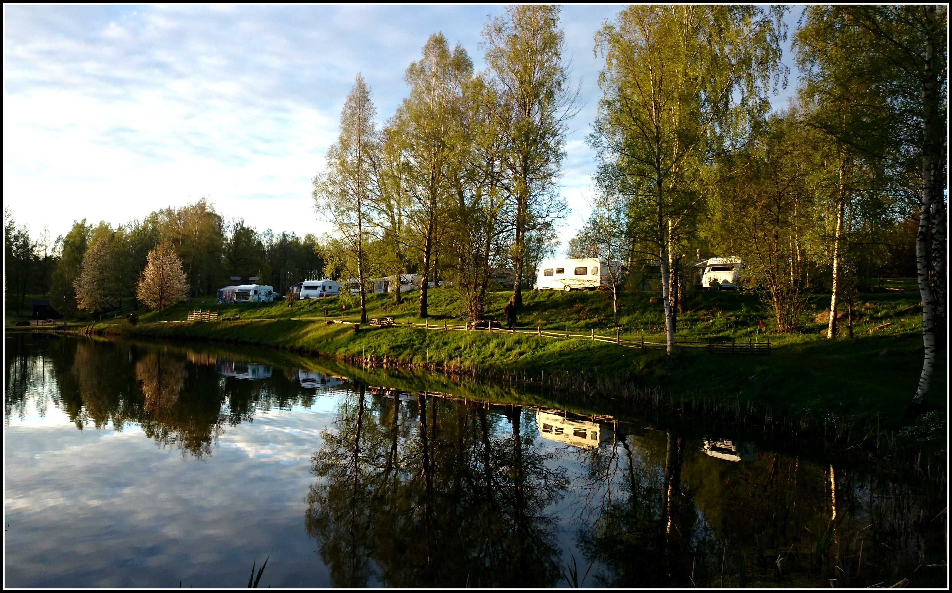 Och då menar jag självklart den vi gjorde igår, än så länge är det ju en anings tidigt för detta ;). Men eftersom jag skröt så om hur vackert här är så tog jag några kort igår kväll när vi gick en runda runt campingen bara för att visa er att jag inte far med osanning ;). Vi gick stigen längs fotbollsgolfen och vi väckte allt en del uppmärksamhet..