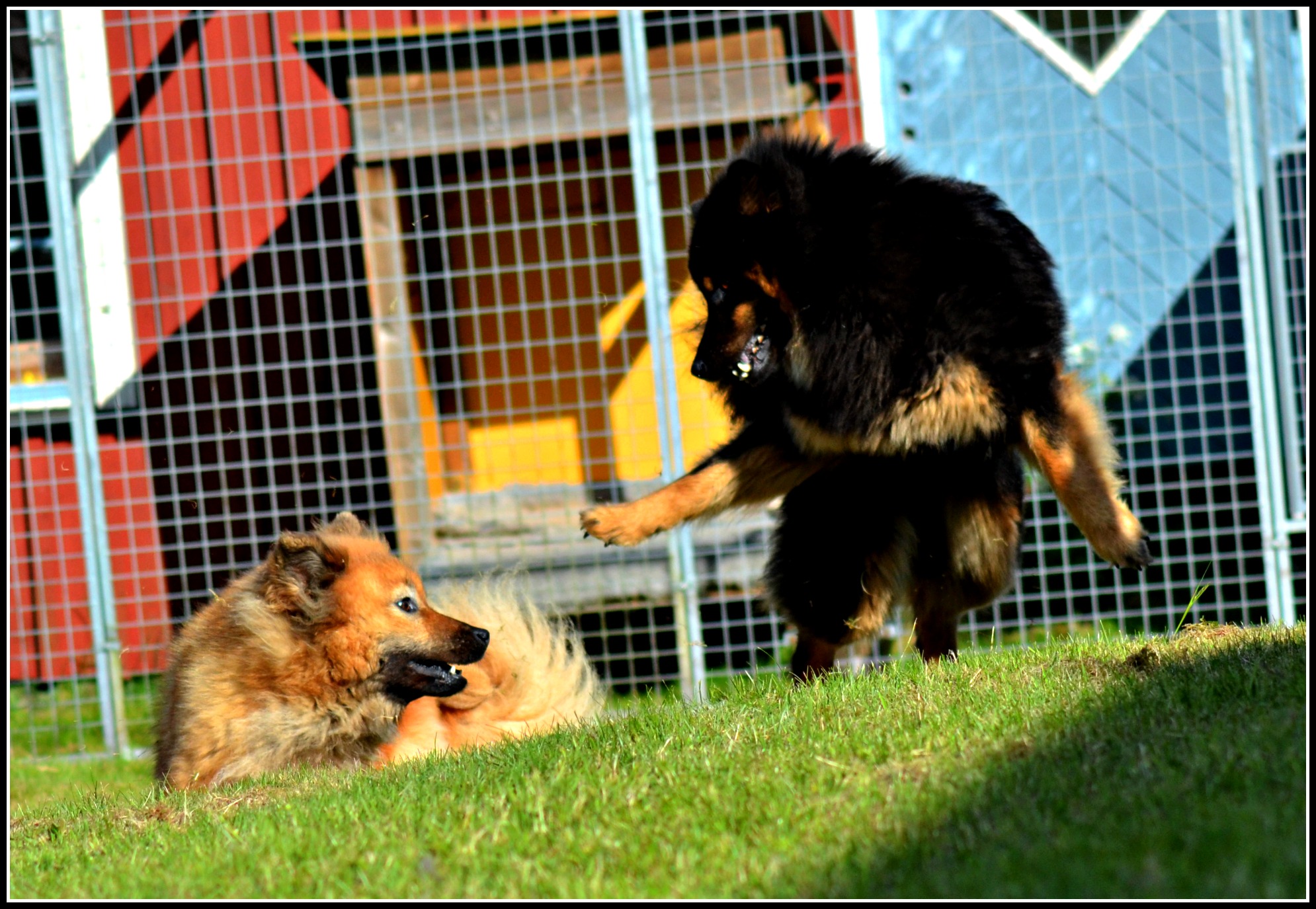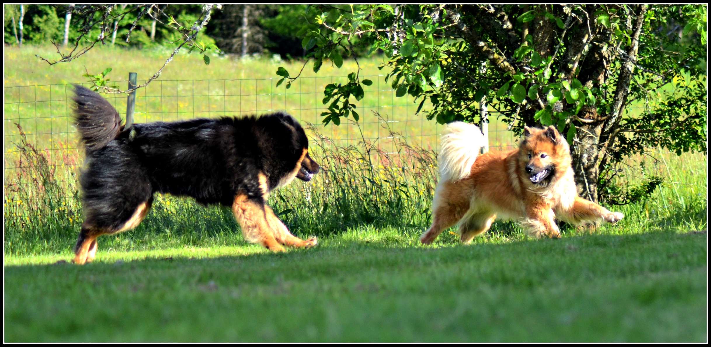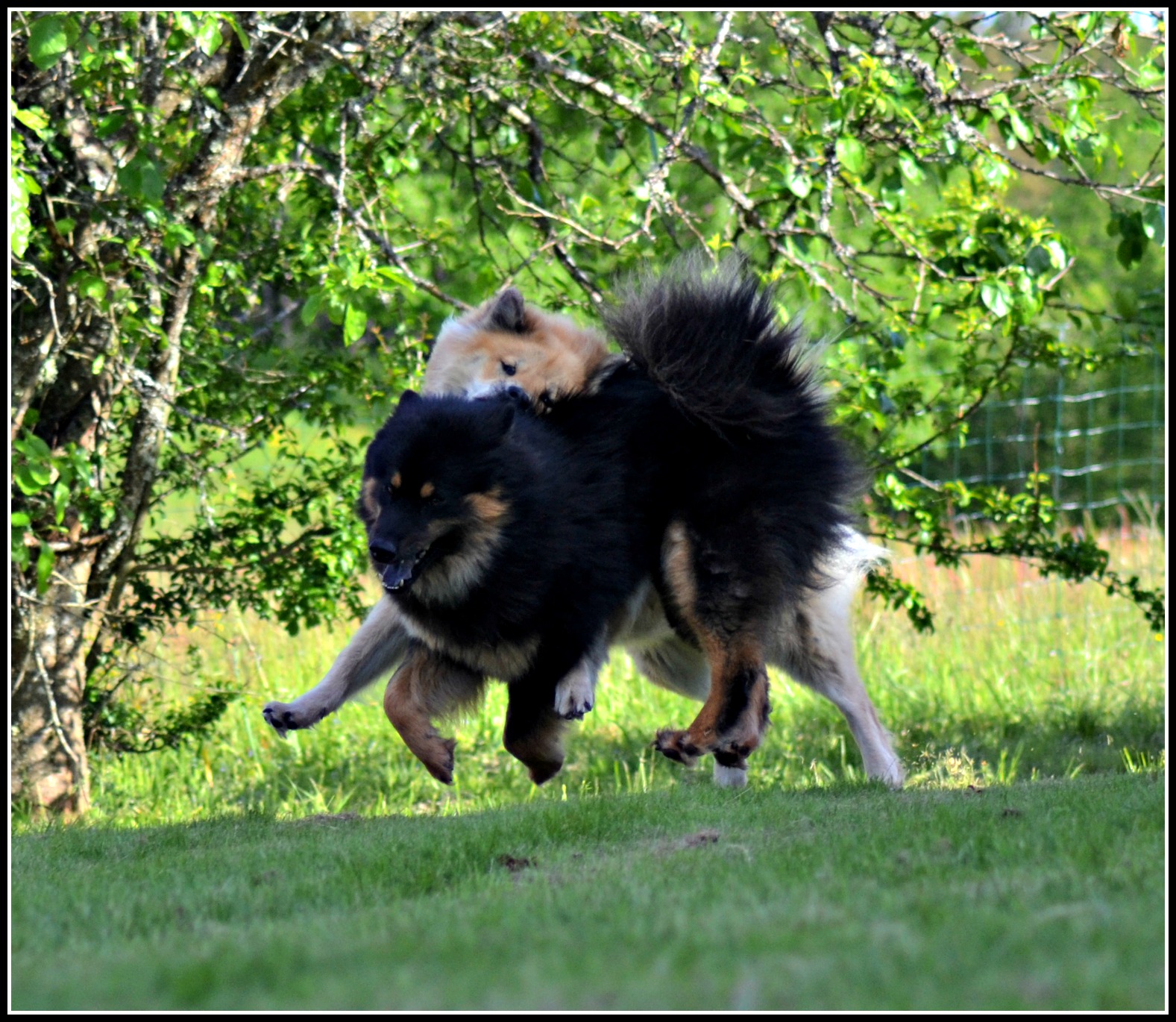 Som ni ser så var det sol här idag också och detta nyttjade jag med att sitta på gräsmattan och klippa klorna på alla tjejerna, funkade hur bra som helst men jag skulle gissa att de bilarna som körde förbi säkerligen undrade vad jag höll på med där jag barfota halvlåg med rumpan i vädret! Så nu är jag väl känd som den tokiga nyinflyttade hundtanten på Ögärdet 😉 :D. Efter jag offentligt gjort bort mig igen så fick tjejerna ett glädjefnatt över att kloklippningen var över och körde ett race eller två 🙂