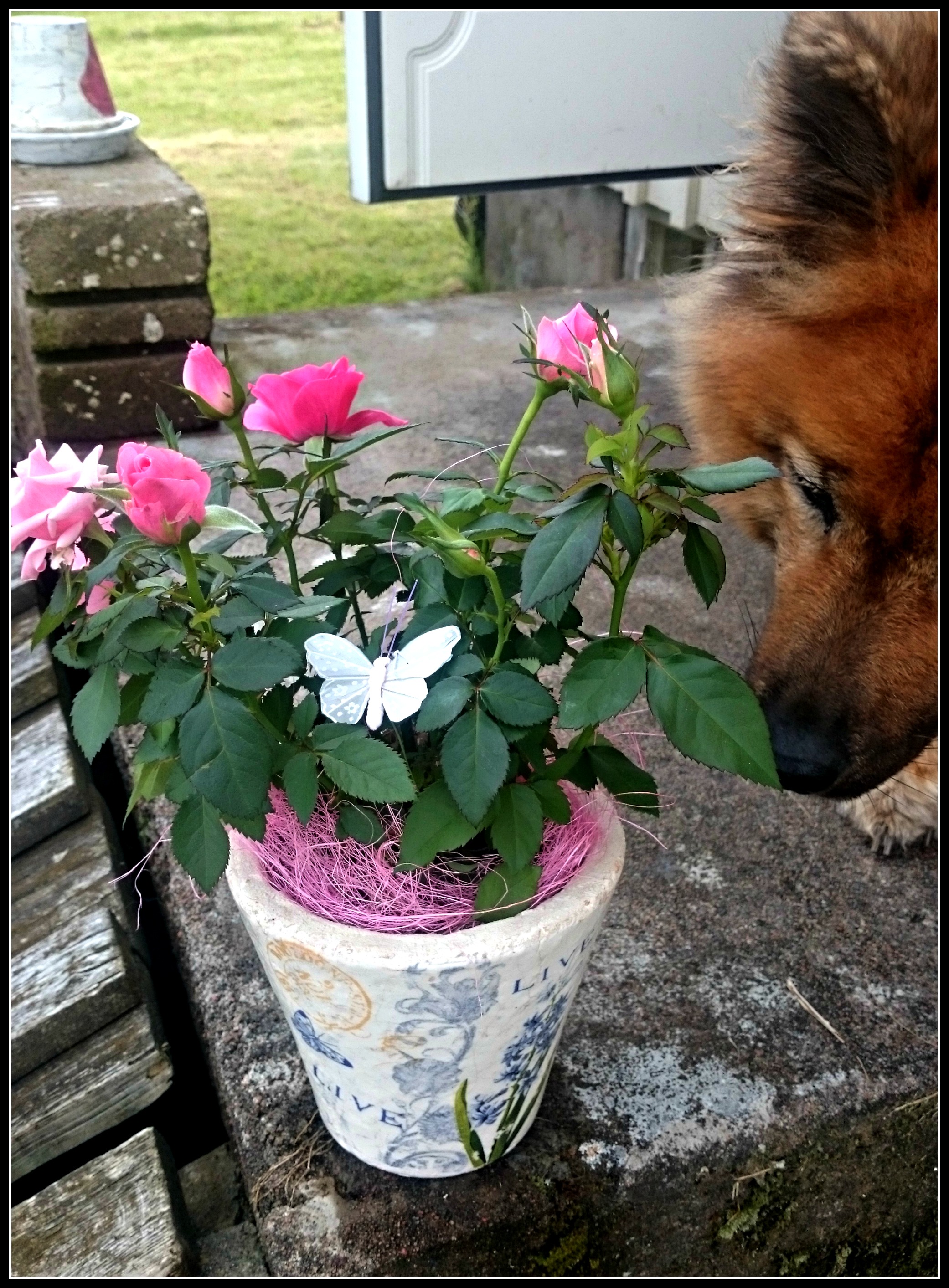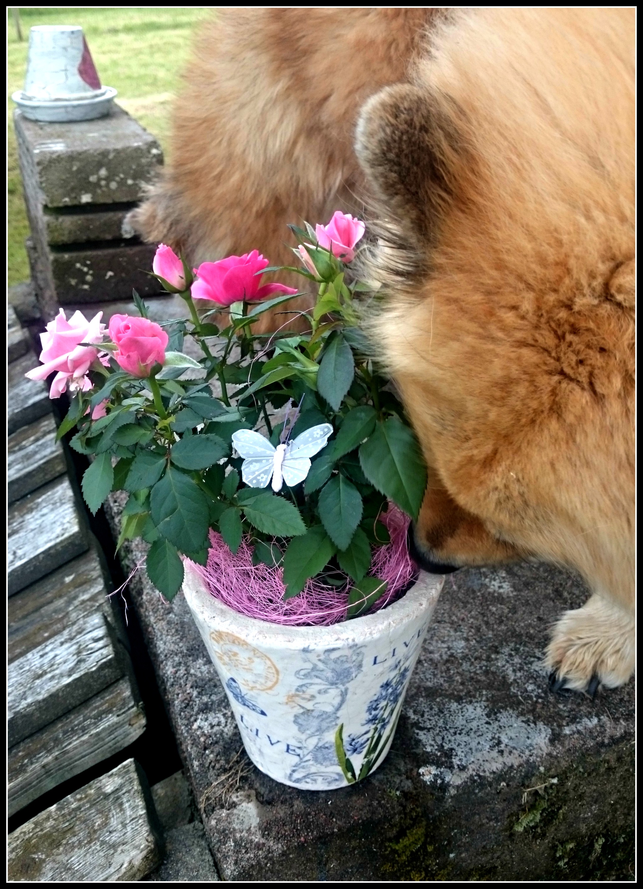 Jo, då helt plötsligt uppvisar alla tjejer ett otroligt intresse för nämnda blomma! Visst är tjejerna också fina men tanken var ju ett foto utan hundar på, inte ett enkelt uppdrag precis som synes…