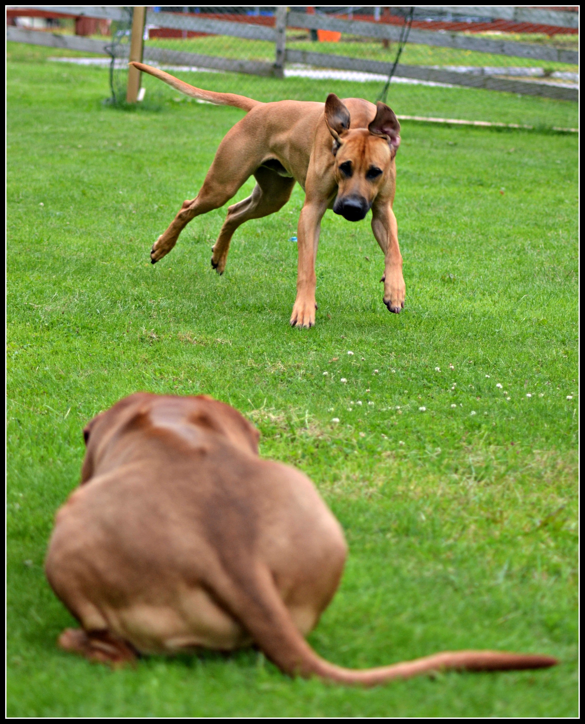 Men inte desto mindre två vackra och framförallt goa grabbar av rasen Rhodesian Ridgeback :). Får jag lova att presentera..