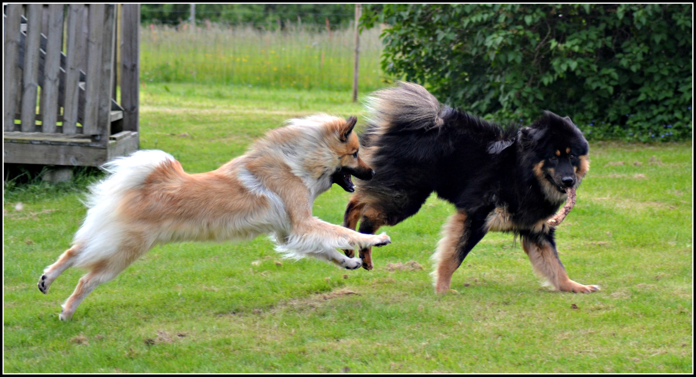 Mycket otippat detta om man säger så, ja ni som känner vår Tindra förstår vad vi menar. Hon brukar inte gärna leka med andra än sina systrar så detta var minst sagt oväntat men inte desto mindre roligt :). Vi trodde att det var halvsyrrorna Jill & Freja som skulle ha fullt upp och visst lekte de som synes..