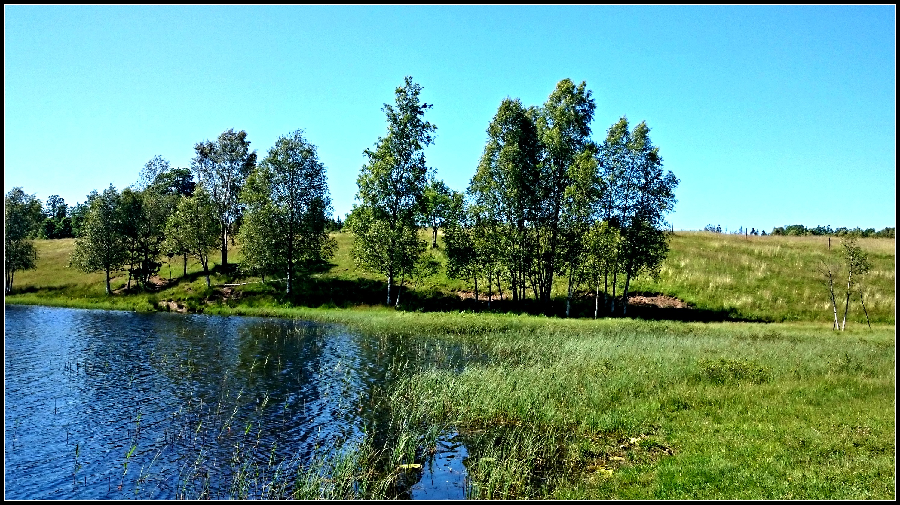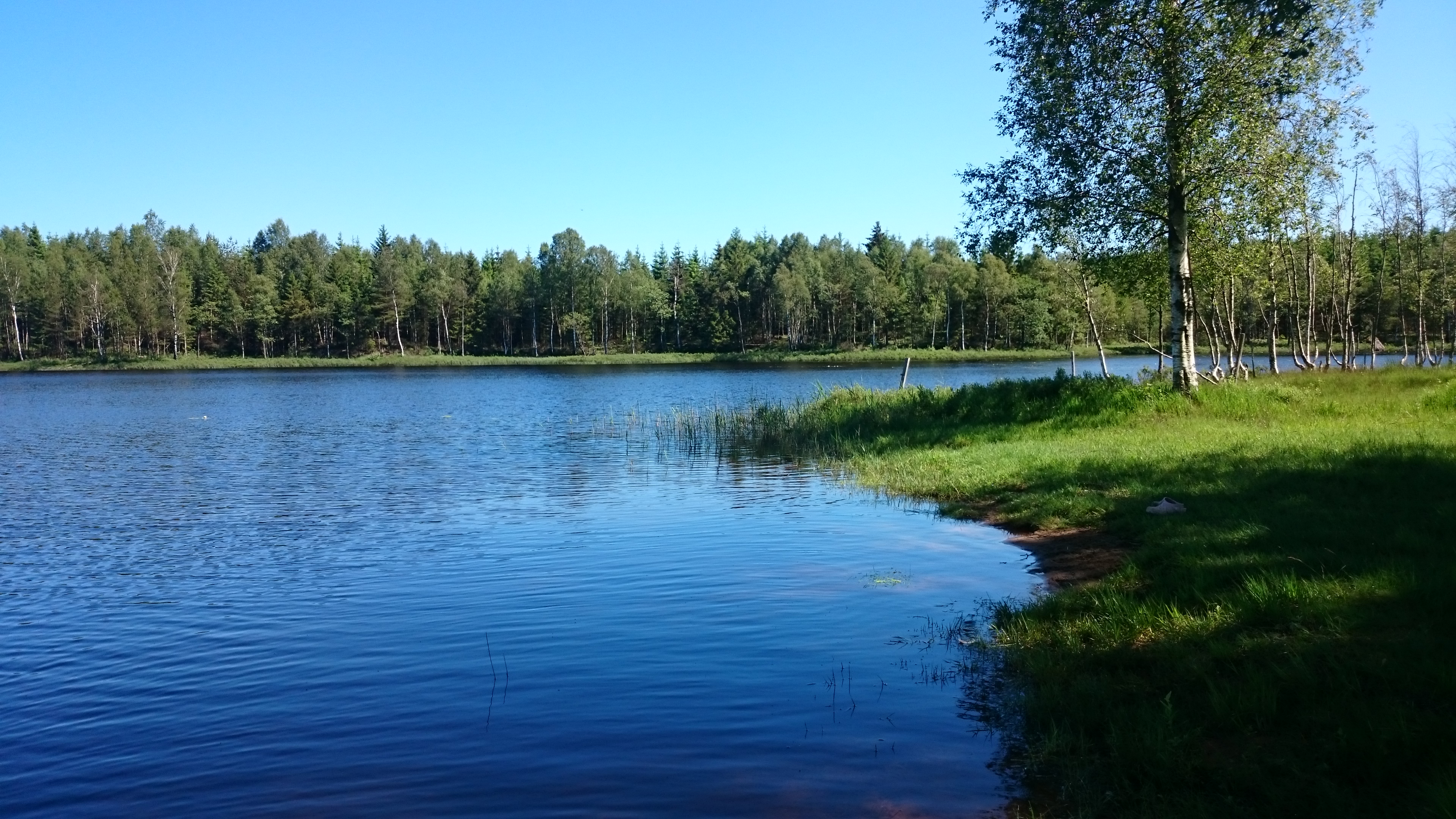 För er som läst mitt förra inlägg så förstår ni säkert nu att vi hittade badplatsen och för er andra, scrolla bakåt ;). Men det var inte så himla enkelt då det inte finns någon som helst skyltning och det faktumet att den ligger dold från vägen, alltså ner i en backe som går ut i sjön. Inte så lätt att förklara men här kommer en bild tagen utifrån halvön där badplatsen ligger..