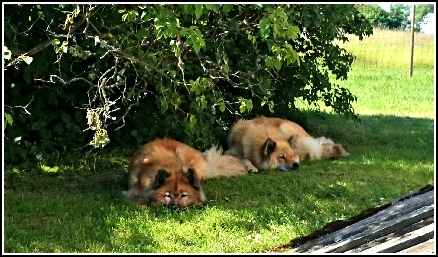 Idag har vi 28 grader varmt och det är nåt jag njuter av, till skillnad från tjejerna som nu allt har det lite jobbigt i värmen här. Det leks inte alls, iallafall inte på dagtid, utan de söker bara skugga nu och en av favoritplatserna är under syrenbusken på dagarna när det är som varmast..