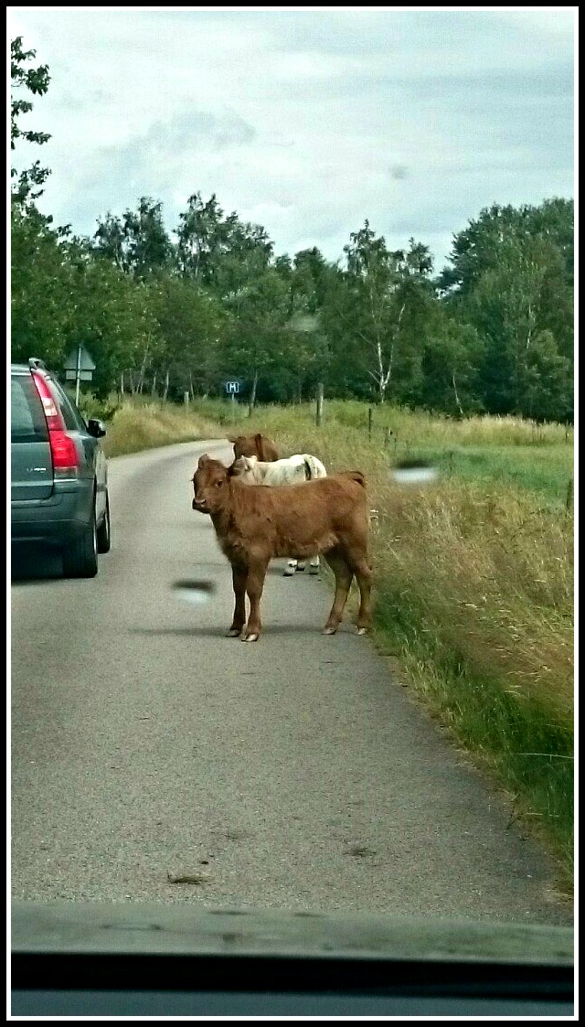Vi har haft några härliga dagar vid havet med värme, blåst, regn och åska, ja en typisk svensk sommar eller? ;). Så i söndags när den värsta värmen dragit förbi tog vi oss en sightseeing både neråt och uppåt kusten vid Falkenberg. Och på alla dessa småvägar finns det gott om väghinder i olika skepnader 😉 🙂