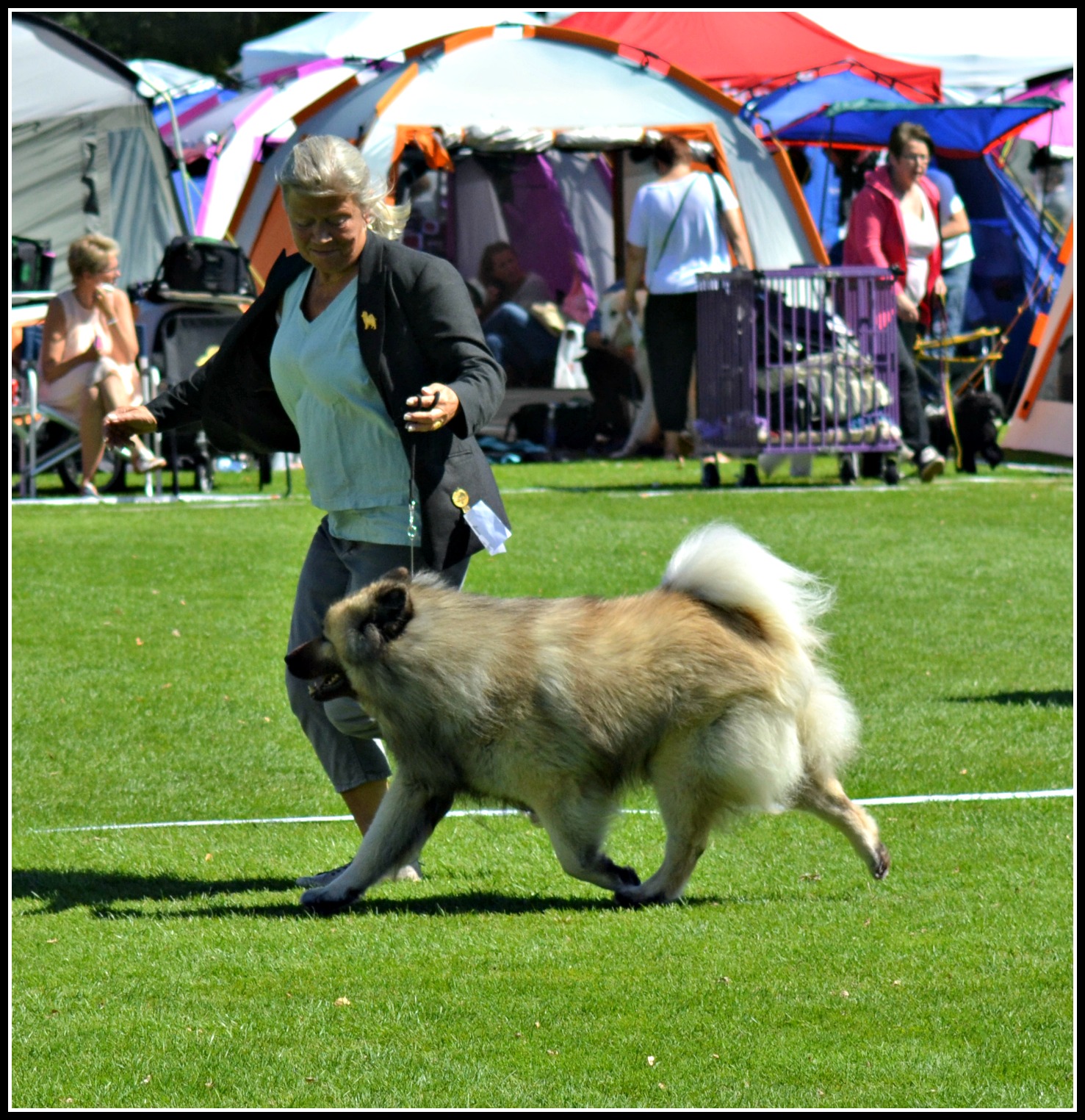 Då var det dags för dag två i Tvååker och denna dag strålade solen återigen ner på oss och domaren Arne Foss från Norge, härligt :). Det var denna dag ett betydligt mindre antal anmälda eurasier, endast 14 stycken, till skillnad från lördagen då det var 24 stycken men de internationella utställningarna drar ju mer hundar såklart.