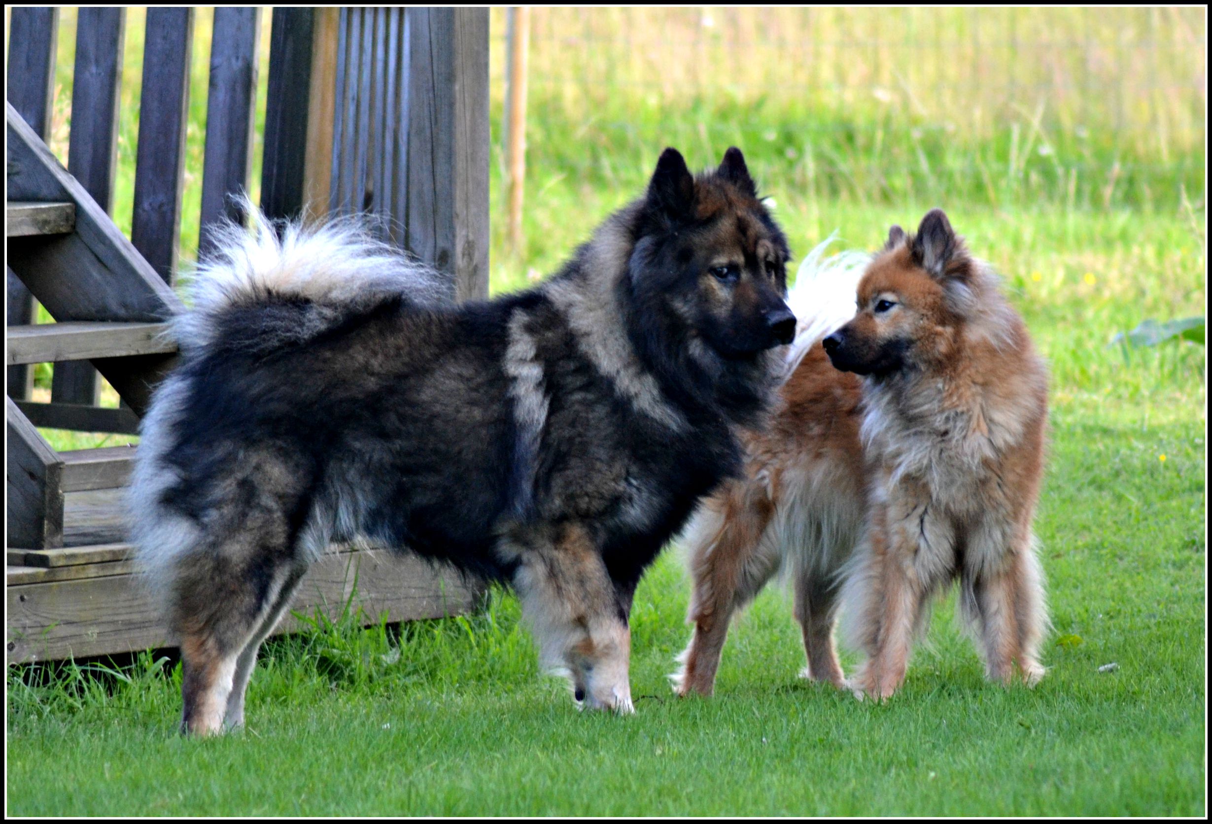 Tjejerna fick då sällskap av ytterligare 3 eurasier i trädgården och man förundras alltid över hur bra det fungerar att släppa ihop eurasier som inte känner varandra speciellt väl. Zelda, som den killtjusare hon är 😉 , välkomnade såklart snyggingen Zeb med öppna tassar 😉