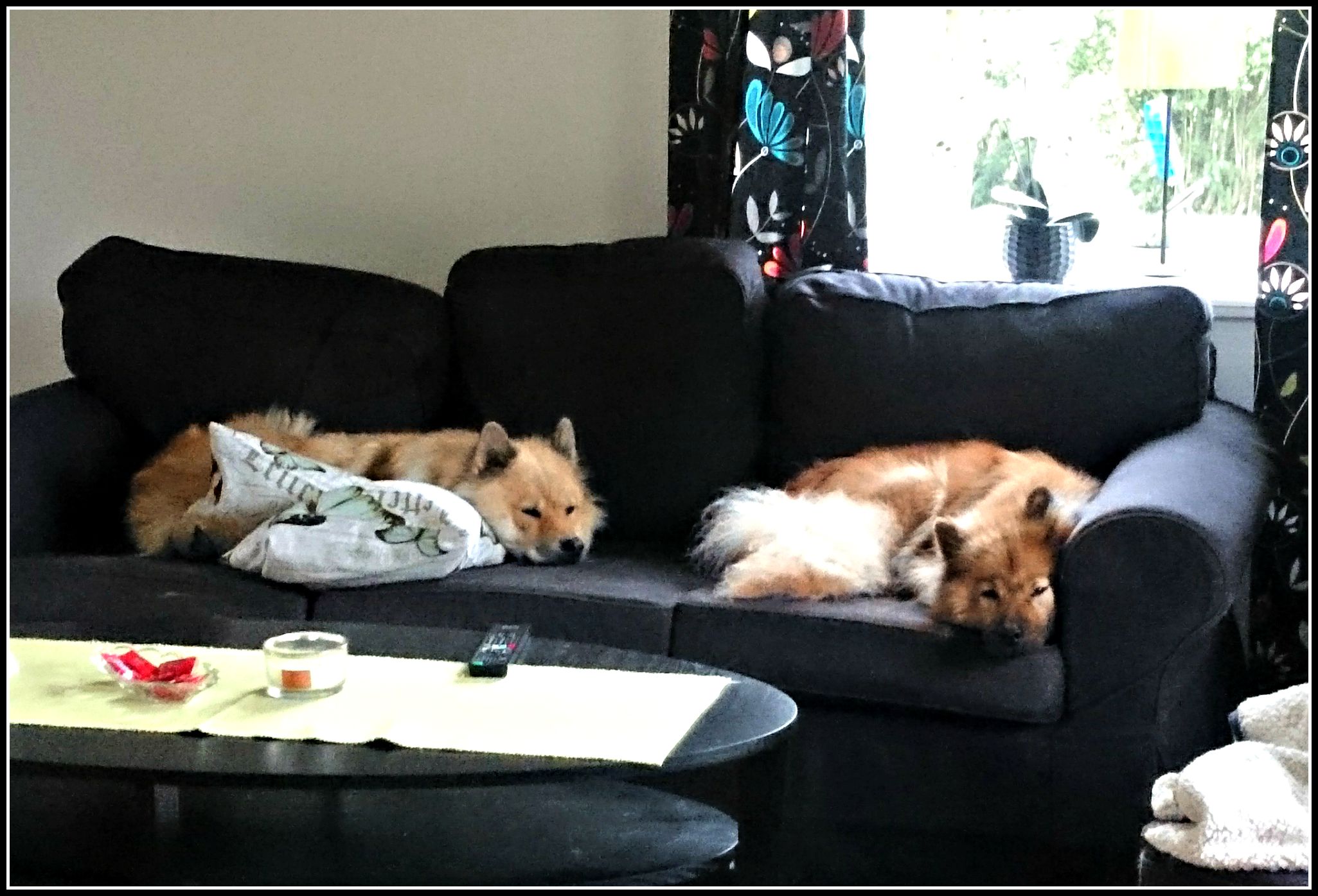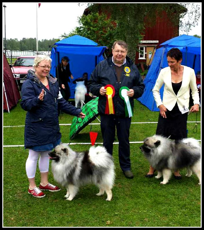 Och varför det undrar ni säkert? Ja som ni vet så fäller ju alla tre tjejer ordentligt nu så visst finns det en bra anledning till detta men det finns ytterligare en och det är att vi faktiskt anmält till utställningen på Bornholm i mitten på augusti, tala om timing eller? ;). Men resan är bokad sedan flera månader så det är bara att gilla läget, åka dit och ställa ut tre vackra men en anings nakna eurasiertjejer 😉 :). Så nu gäller att kamma ur så mycket gammal päls som det bara går så kanske lite lite ny päls hinner komma, ja jag vet att chansen inte är stor men hoppet är ju det sista som överger en eller? ;). Sedan har Siv lovat att hjälpa mig och göra en insats med sin hundfön på tjejerna, så då kanske tjejerna kan se en anings fluffiga ut ändå men har någon av er därute ett bra tips på vad som kan fluffa upp dem i detta läget så tas de tacksamt emot 🙂