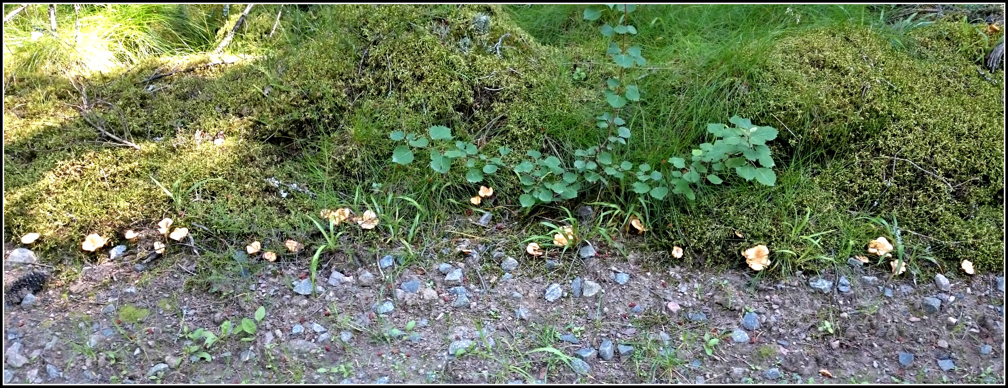 Så här såg det ut både här och där, inga massor men fullt tillräckligt ändå för att tillfredsställa gubbens kantarellbehov…