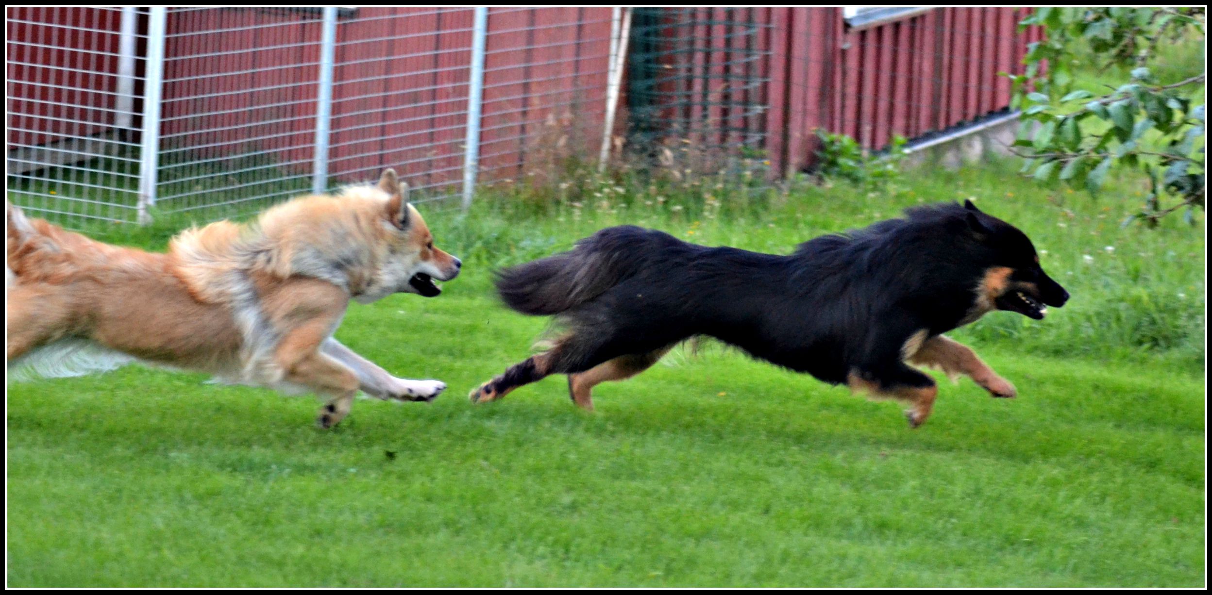 Ja det här med att leka tafatt på kvällskanten verkar dessa två tycka är toppen och då gärna runt huset i en hiskelig fart medan sessan i flocken hellre spanar efter nåt i fjärran 🙂