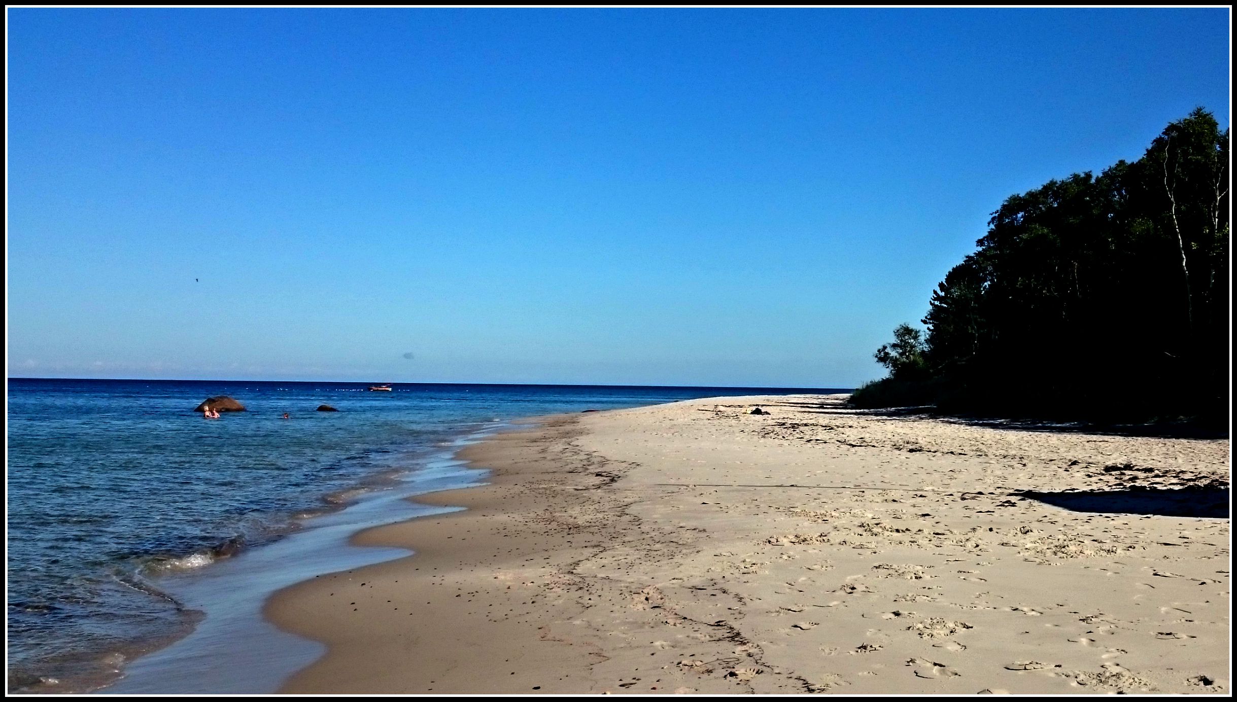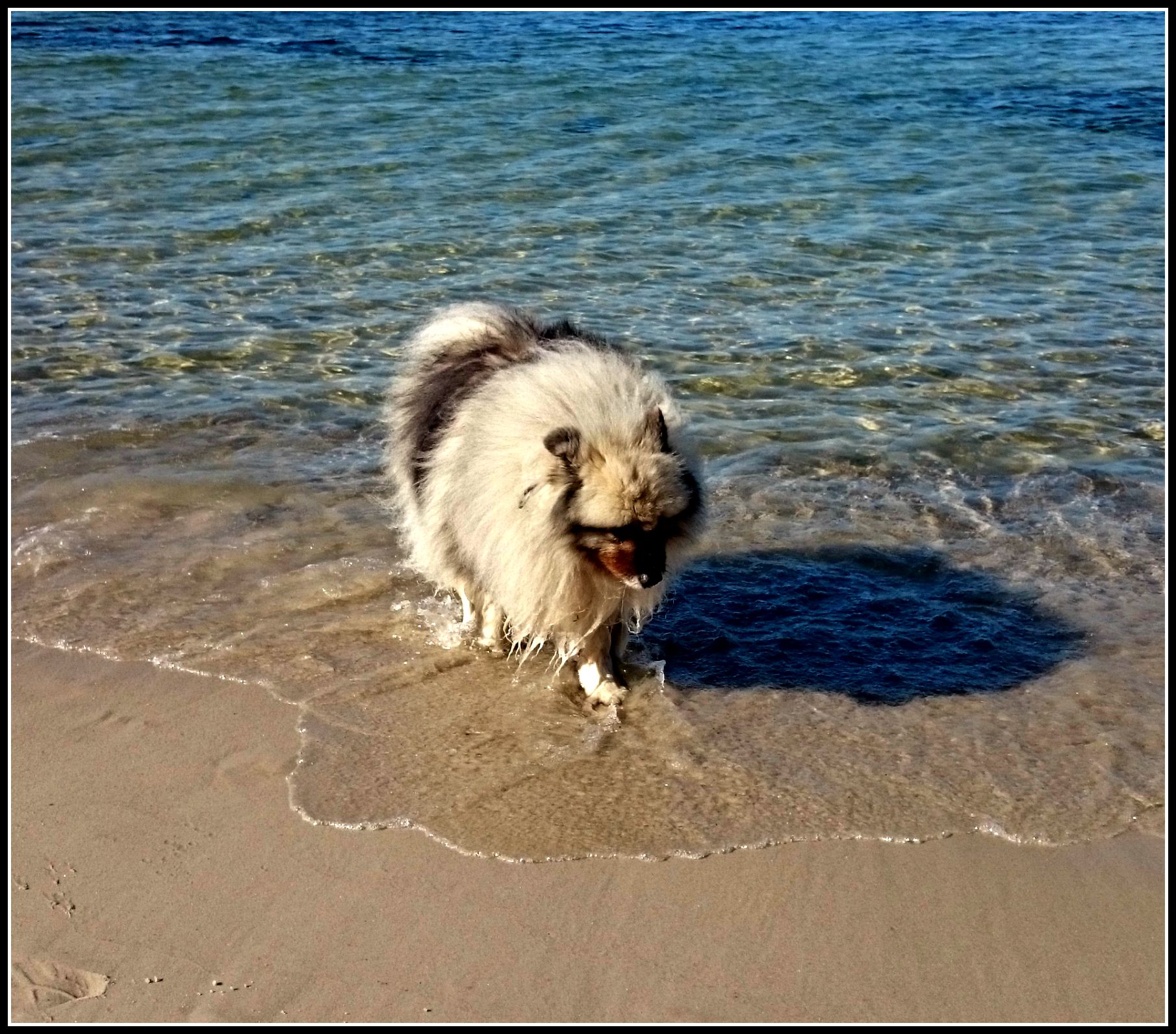 Man kunde ju nästan tro att man kommit till Karibien eller nåt ;). Och även vattnet lockade oss och Bom var snabbt i för att testa 🙂
