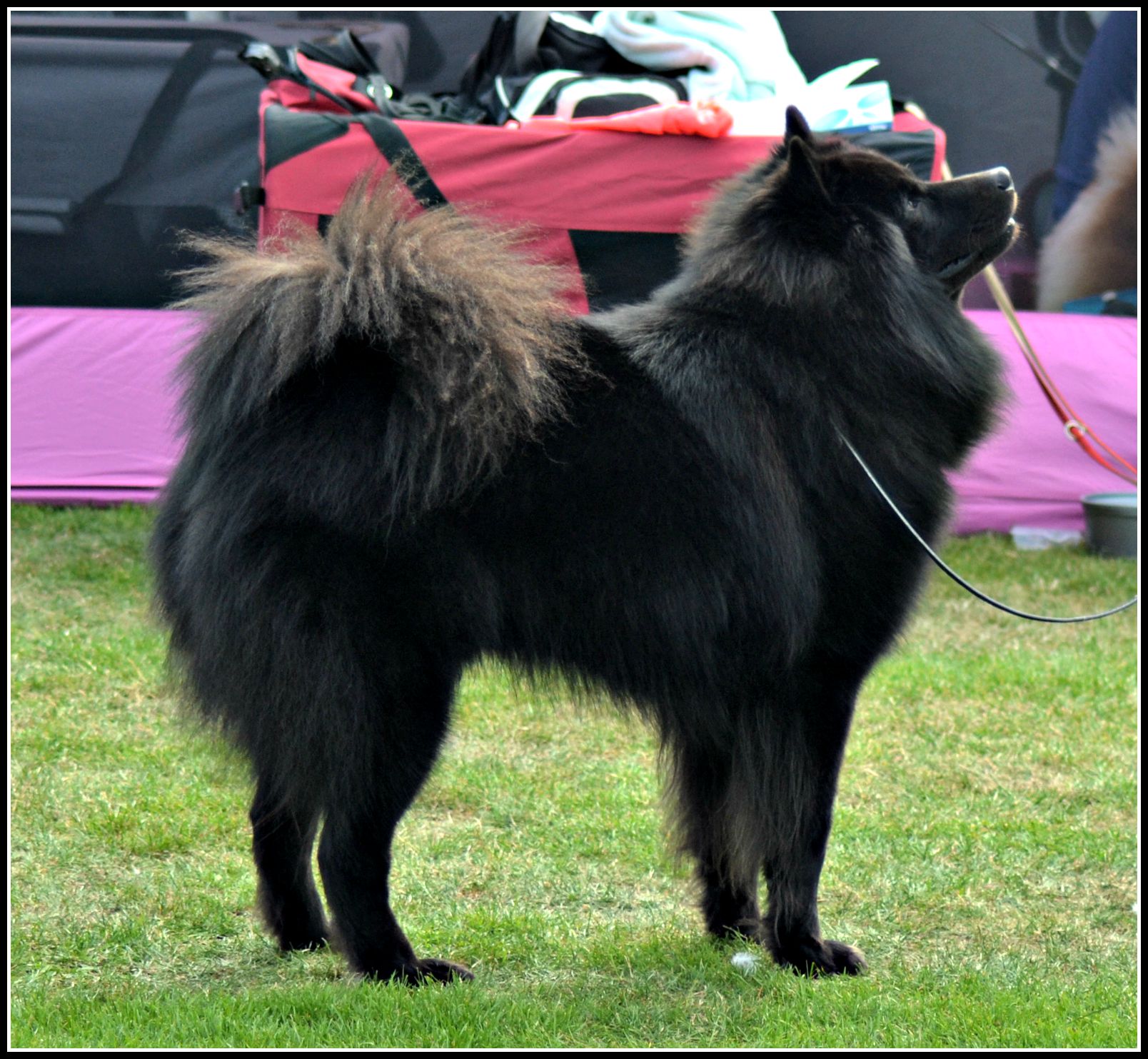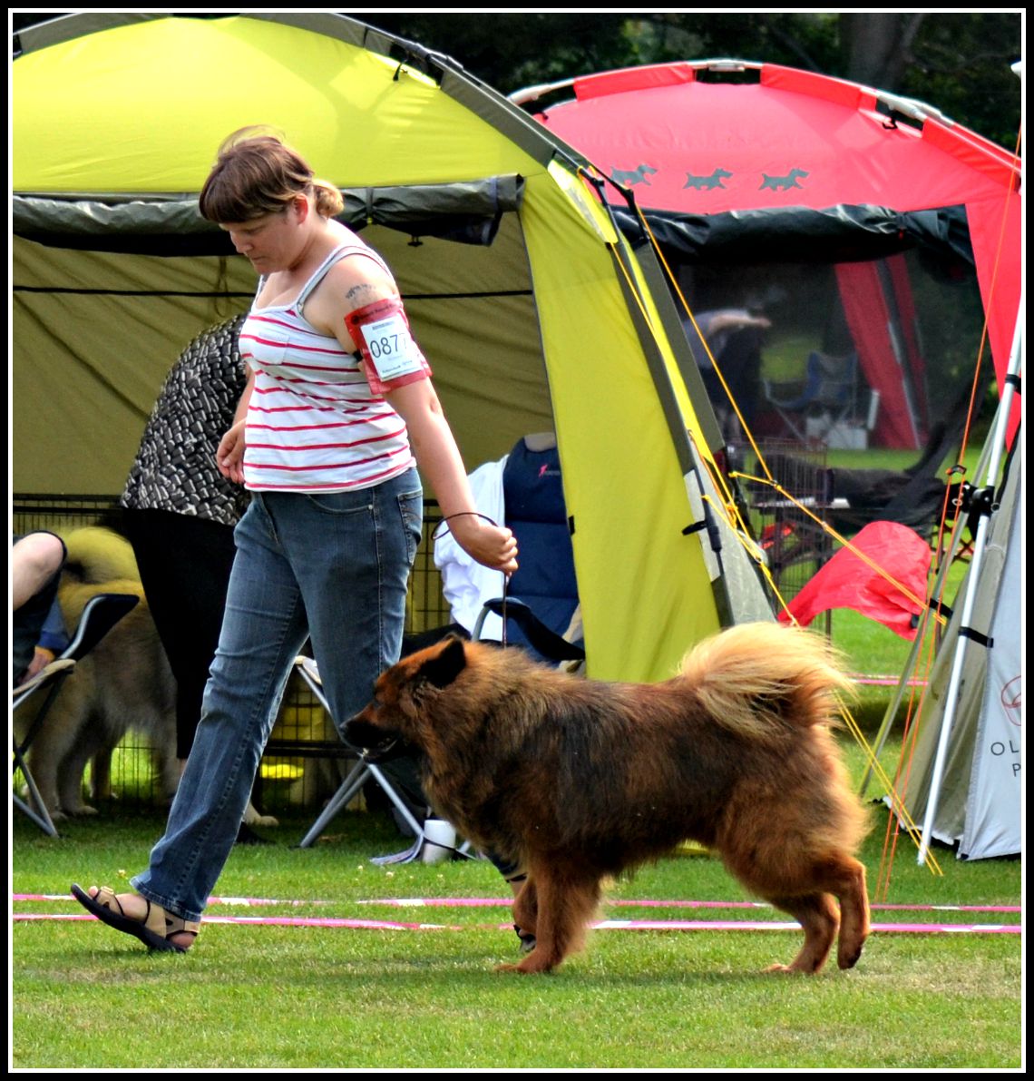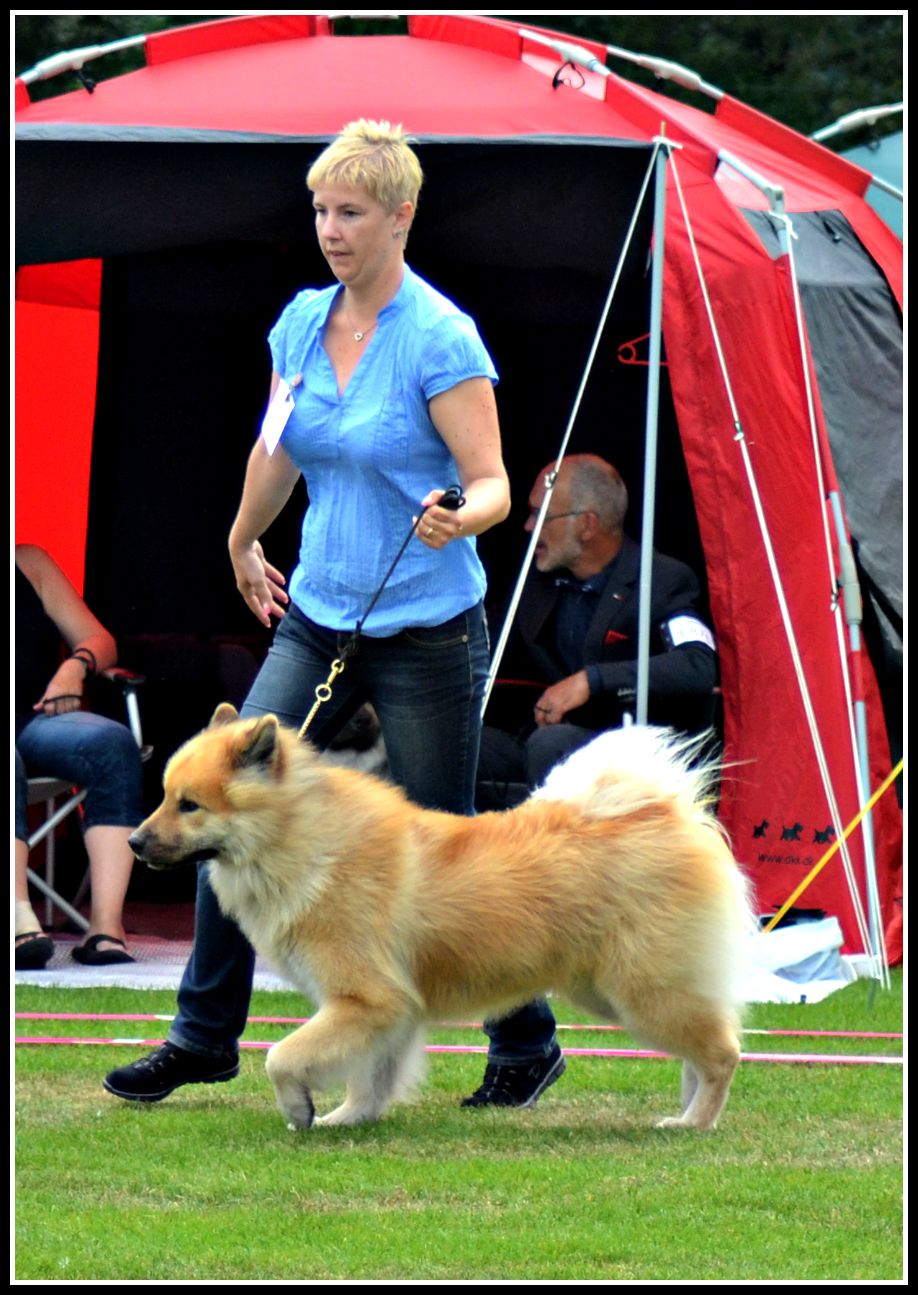 Domaren Leni Finne tog god tid på sig men tillslut var hon framme vid eurasierna och här säger jag direkt att någon ringrapport blir det inte denna gång men ett gäng bilder och några resultat på eurasierna kan jag dock bjuda på. Tyvärr la batteriet i kameran av lagom till tikarnas öppenklass, så typiskt att jag inte hade kollat detta men starten på dagen var ju inte den bästa om man säger så 😉