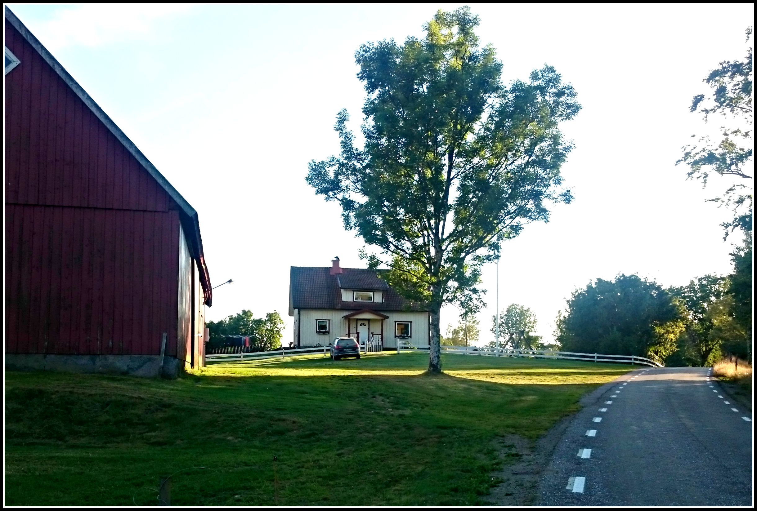 Och precis som vanligt när vi når slutet av vår runda så möts vi av synen av vår lilla gård, något som alltid gör mig lika glad och som får mig att tänka på hur himla bra vi trivs här! 🙂