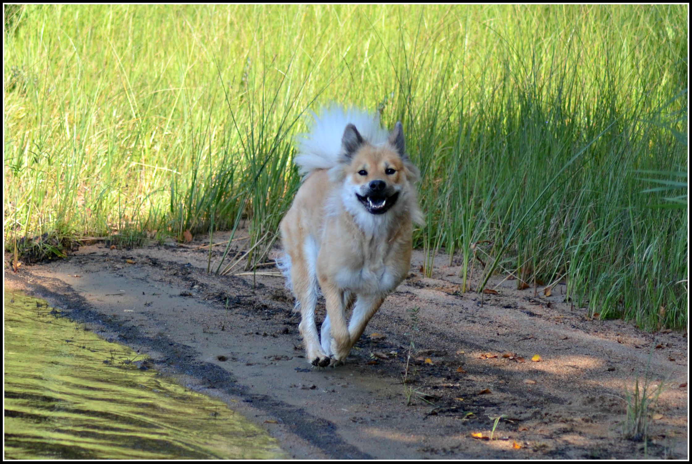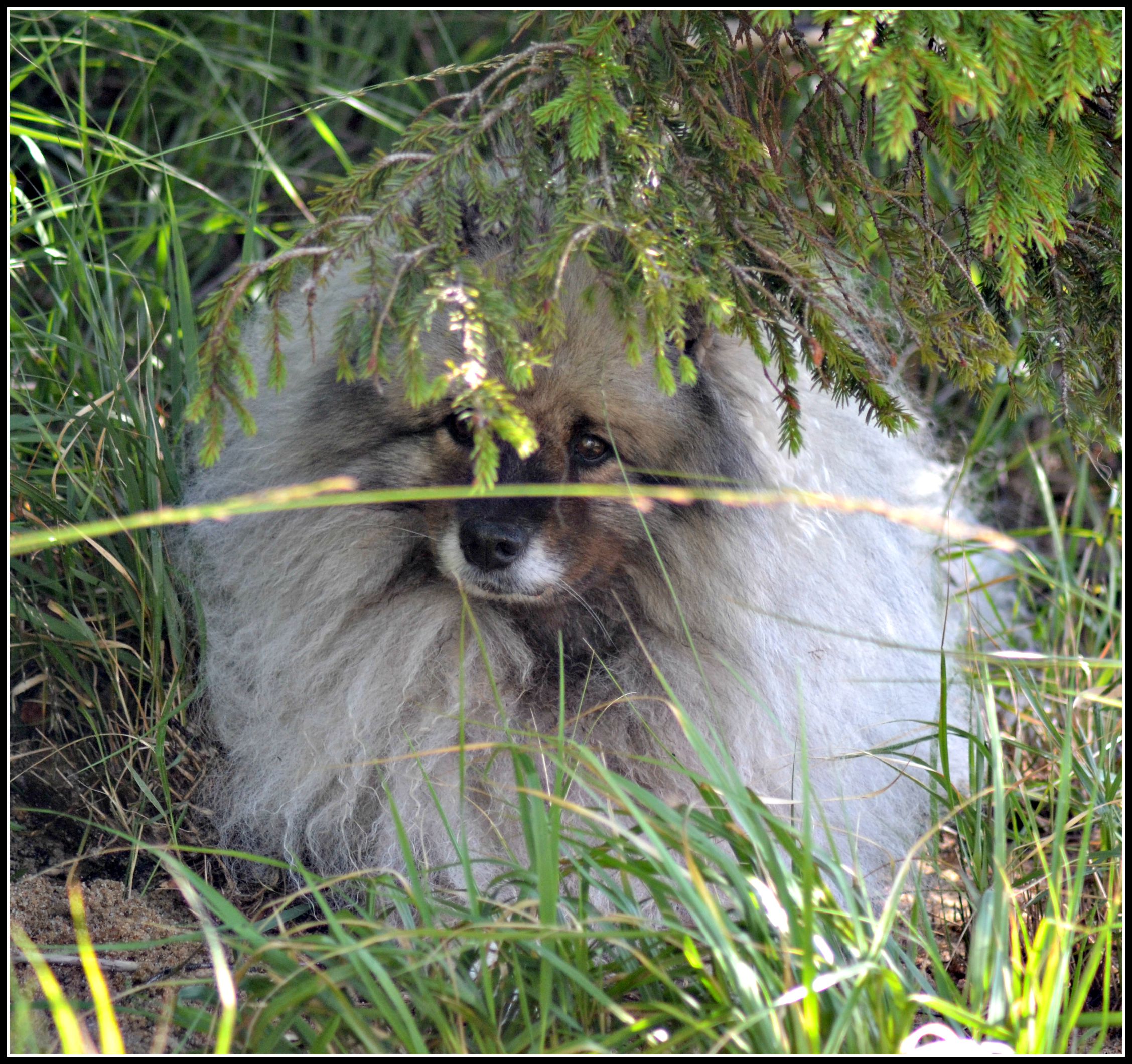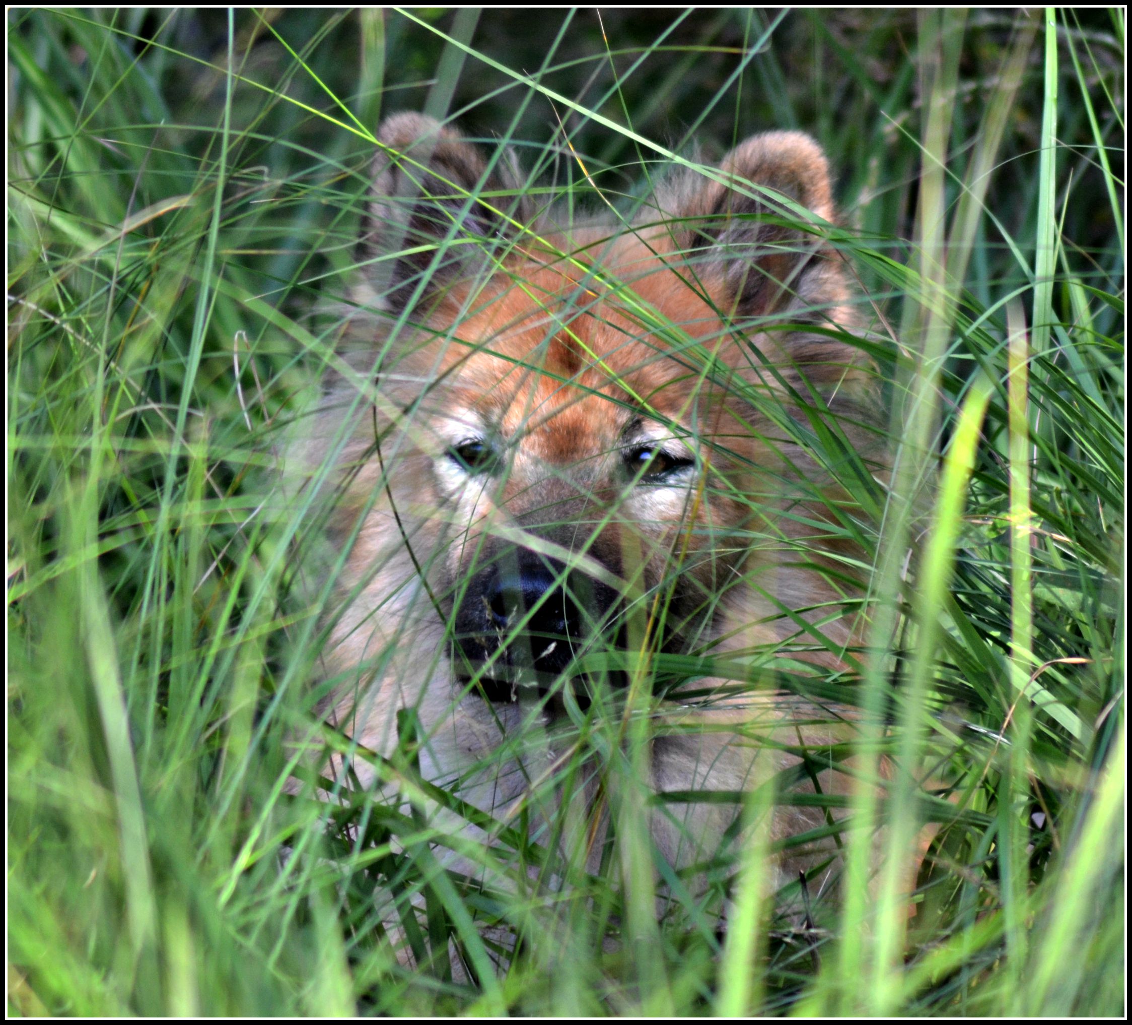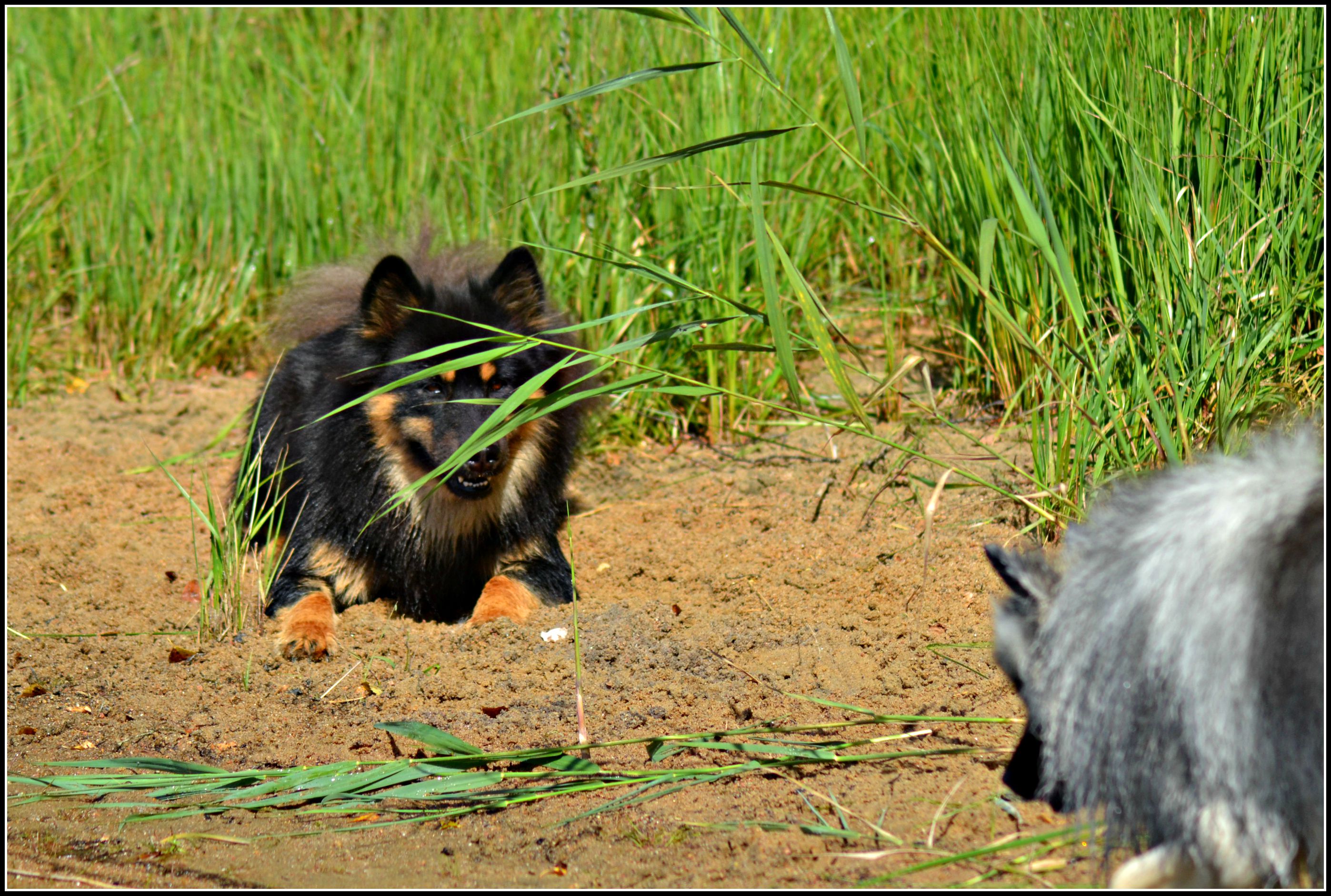 Tillslut verkade det som om Jill fick nog av vattnet och valde istället att smyga på Fia bakom det ”jättestora” vasstrået 😉 😀
