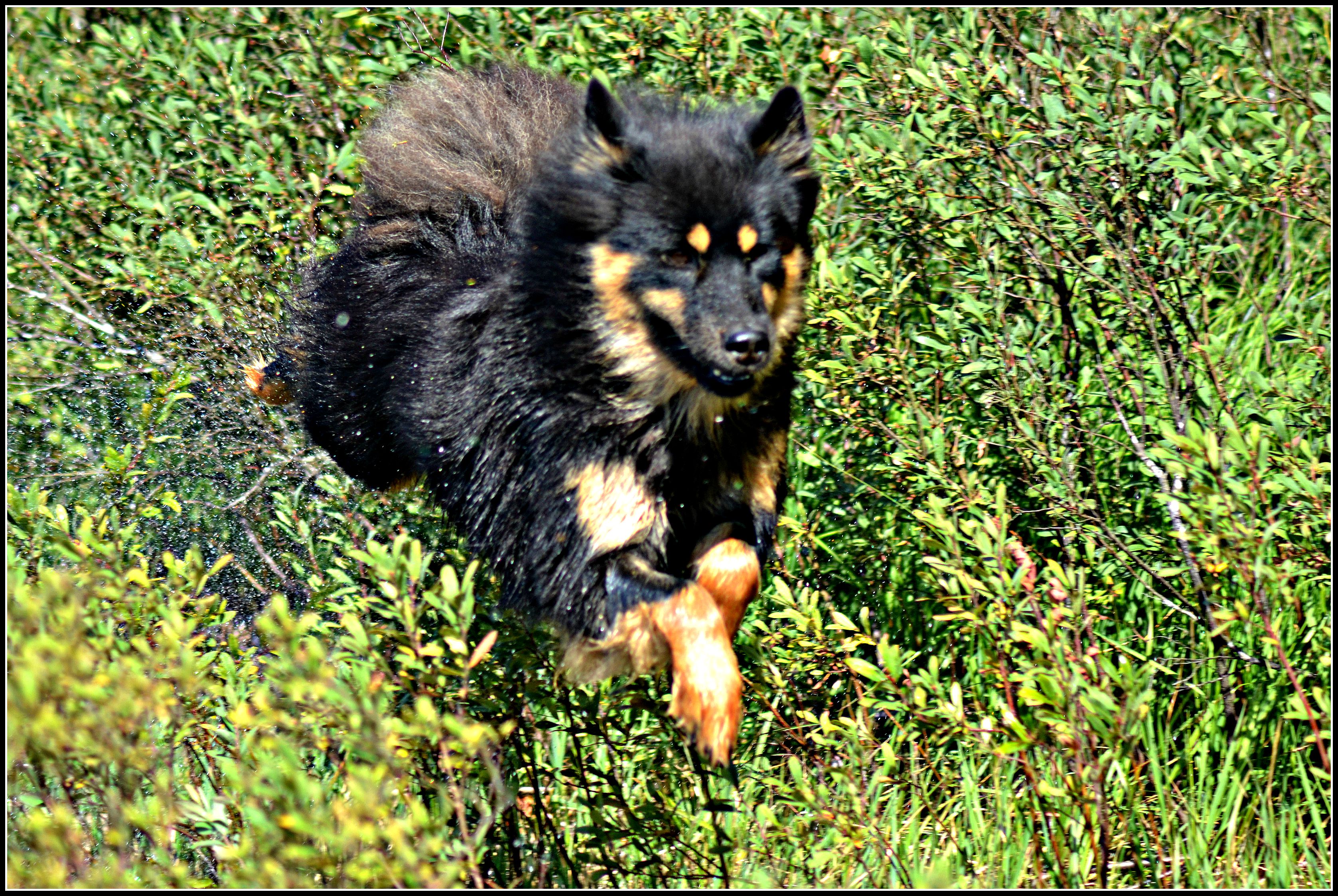 Inte konstigt alls då att man blir så här blöt, inte så mycket kvar av hennes fluffiga päls här inte 😉