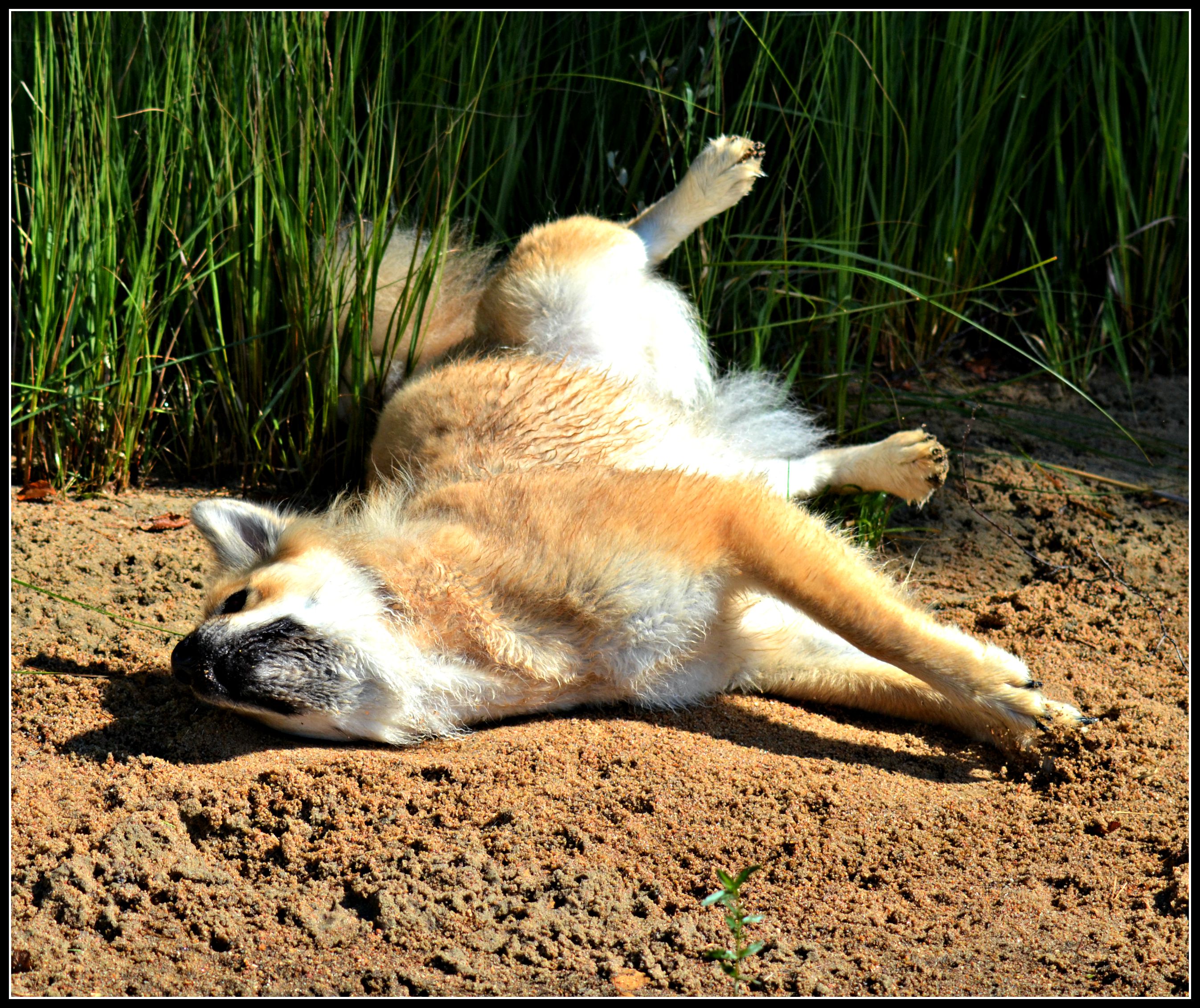 Tindra däremot passade på att fräscha upp hy och päls lite med ett sandbad 🙂