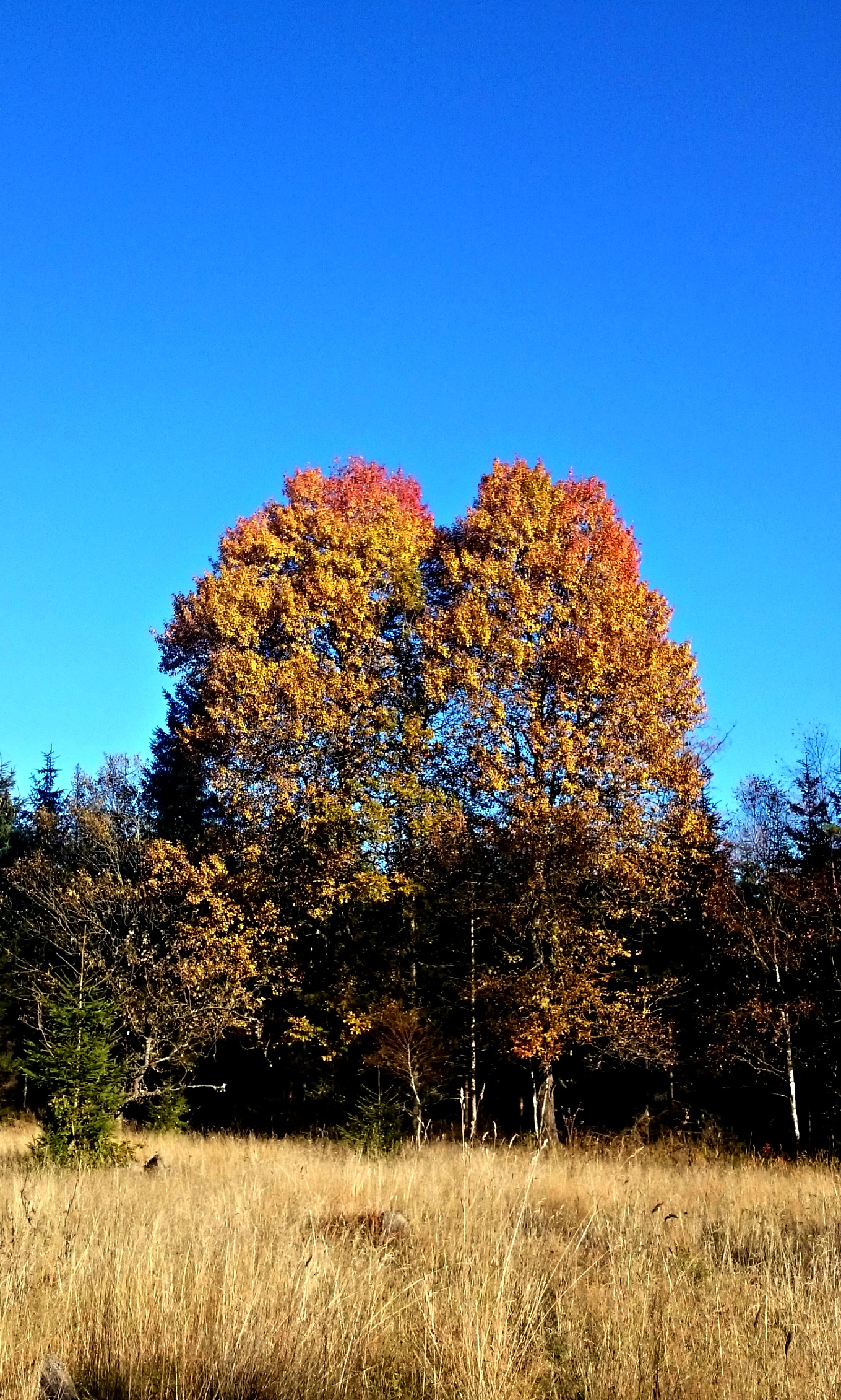 Eller snarare som att promenera med en kombination mellan Skalman och Ferdinand, ja så känns det med Tindra i kopplet just nu. Hon är ju lite efter-löp deppig, precis som hon brukar, och det innebär att hon går i mycket sakta mak samt ska lukta på allt och det länge… Suck, minst sagt tålamodskrävande om man säger så och för att inte tala om hur roligt det egentligen måste se ut? Jag menar, en hund på släp med en människa i mitten med armarna på var sitt håll och i täten två ivriga tjejer, ja jisses ;). Men det finns ju vissa fördelar om man tänker på saken, jag har ju all tid i världen för att fota alla vackra höstfärger 🙂