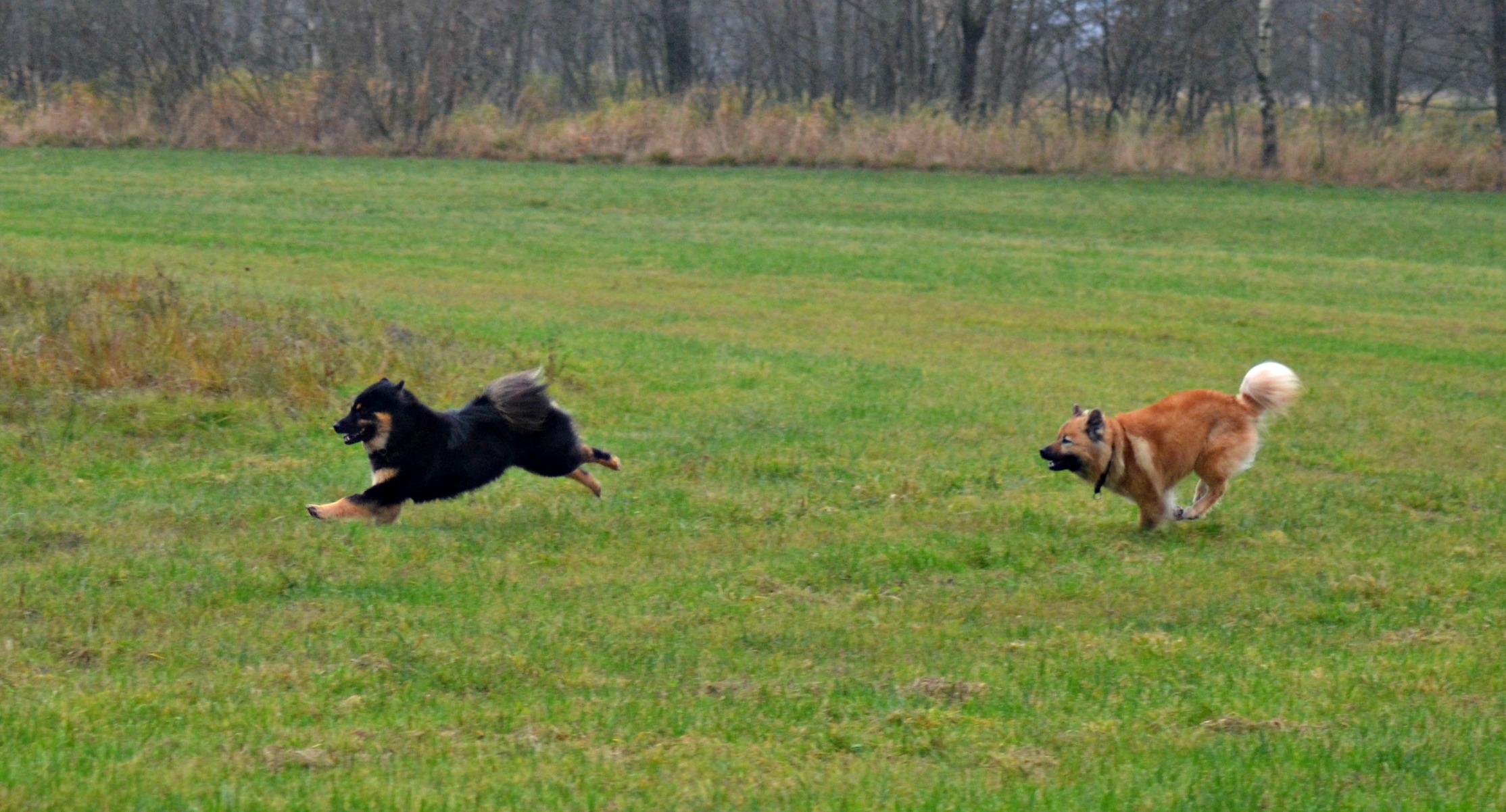 Men hur trogen man än är sin matte så blir det ibland lite för svårt att motstå inviterna av de andra till några race i gräset…