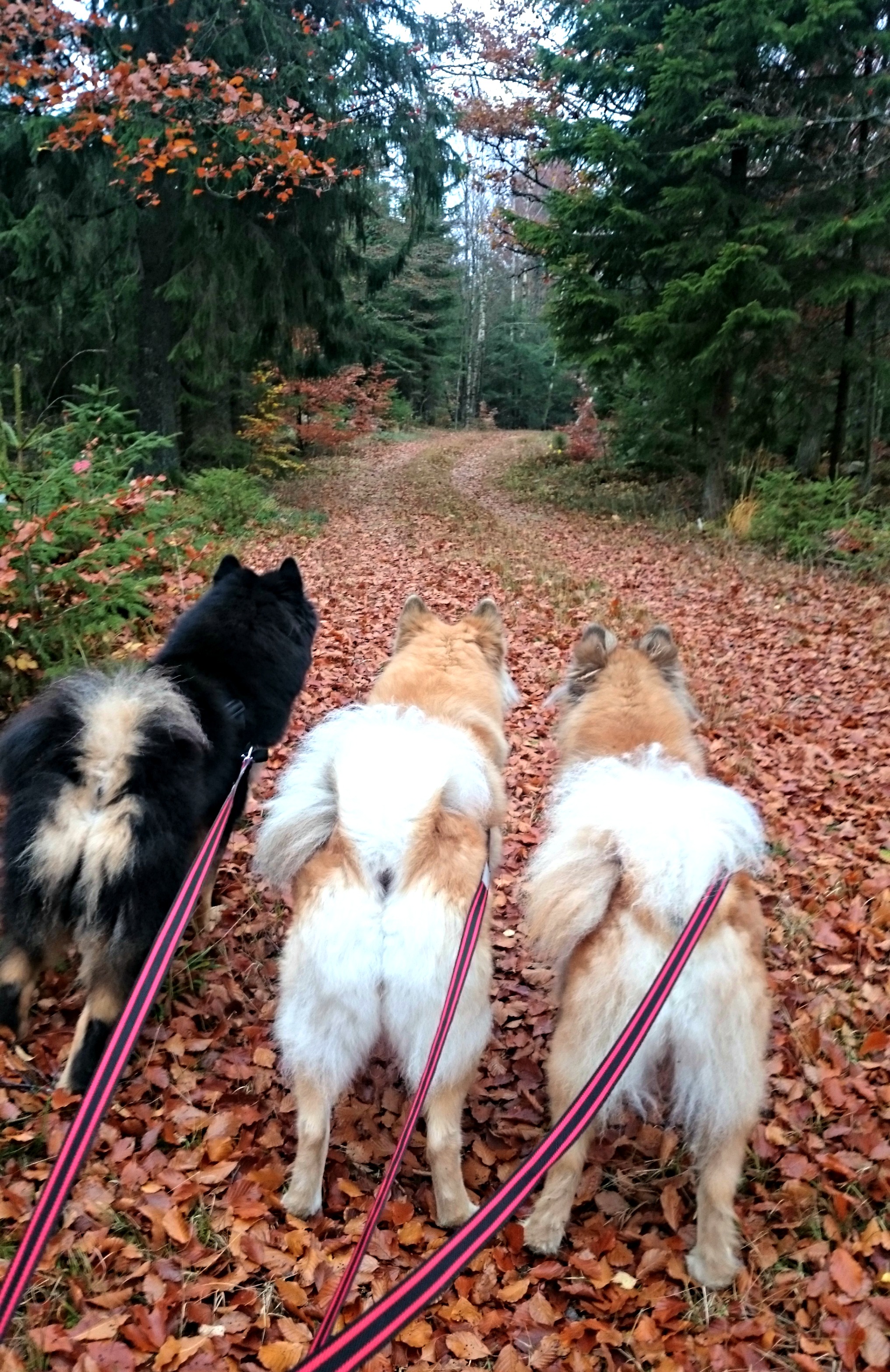 Idag var koppelpromenad som gällde för tjejerna och det längs en ny runda som jag hittat. Den går en liten bit längs asfaltsvägen förbi sjön..