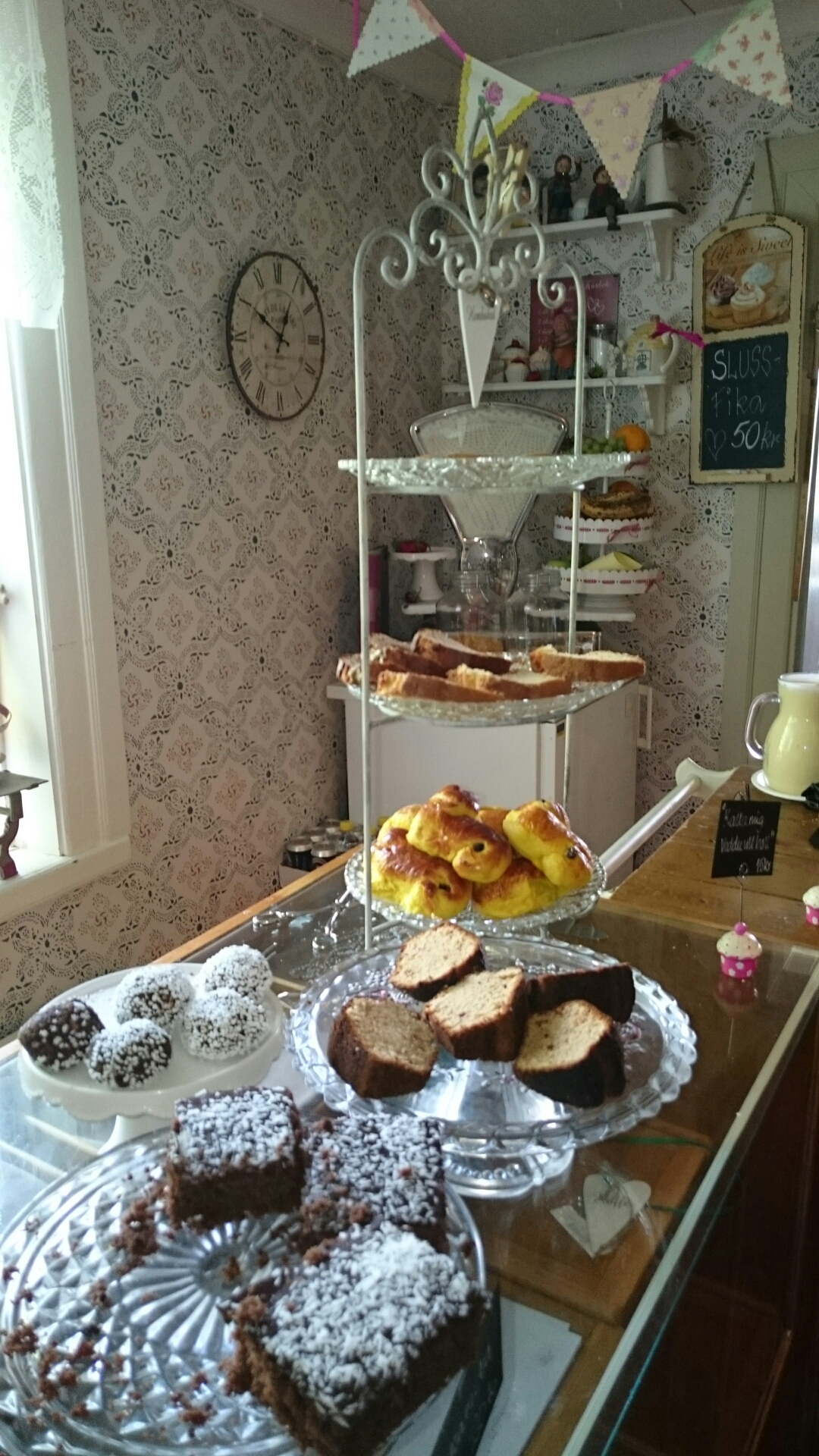 Det tog sin lilla tid och vi hann bli rejält kaffesugna innan båtarna slussats upp och tur var väl då att där även fanns ett fik som både erbjöd riktig gofika..