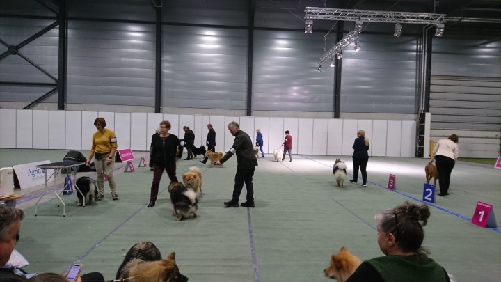 Dagen började med utställning i Lilleström, en utställning som var trevlig på alla sätt förutom det att bedömningen tog alldeles för lång tid. Nu visste vi ju såklart att det inte skulle göras i en handvändning med 55 anmälda eurasier men att det skulle ta ca 3,5 timme hade vi definitivt inte räknat med 😳. Många anmälda i varje klass tog som sagt sin lilla tid och gjorde att jag helt gav upp att försöka mig på att fota och memorera alla resultat 😊