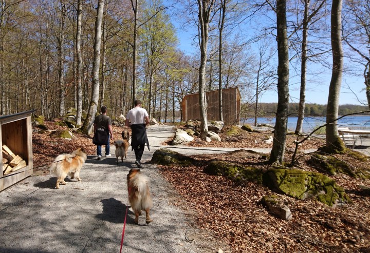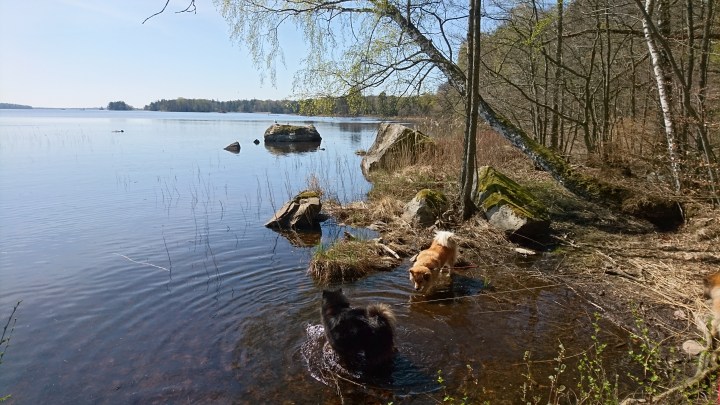 Fina stigar kantade sjön, en sjö som såklart inbjöd till bad, ja hos de fyrfota då alltså 😉