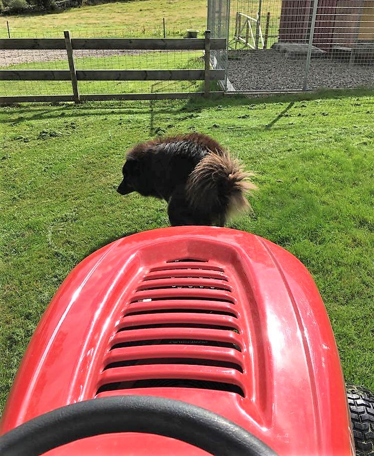 Och nu menar jag inte att det är speciellt höga odds för att någon av hundarna gör nummer två i trädgården men varför precis framför gräsklipparen när de har, som sagt, typ 2500 kvadrat att göra det på? 😉 . Så det var bara att snällt stanna klipparen och vänta tills damen i fråga var färdig 😉 😀