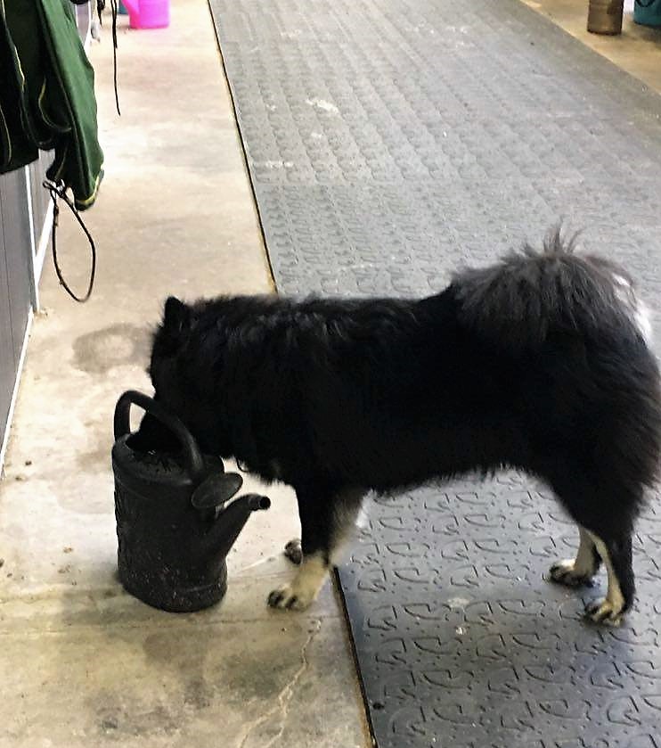 Nu skulle man kunna tycka att om man har en fräsch och alltid välfylld vattenskål i stallet så borde man väl föredra att dricka ur den eller? Men nej då, det finns bevisligen minsann mycket bättre saker att dricka ur som favvon nummer ett, hästarnas vattenkannor 😉 😀