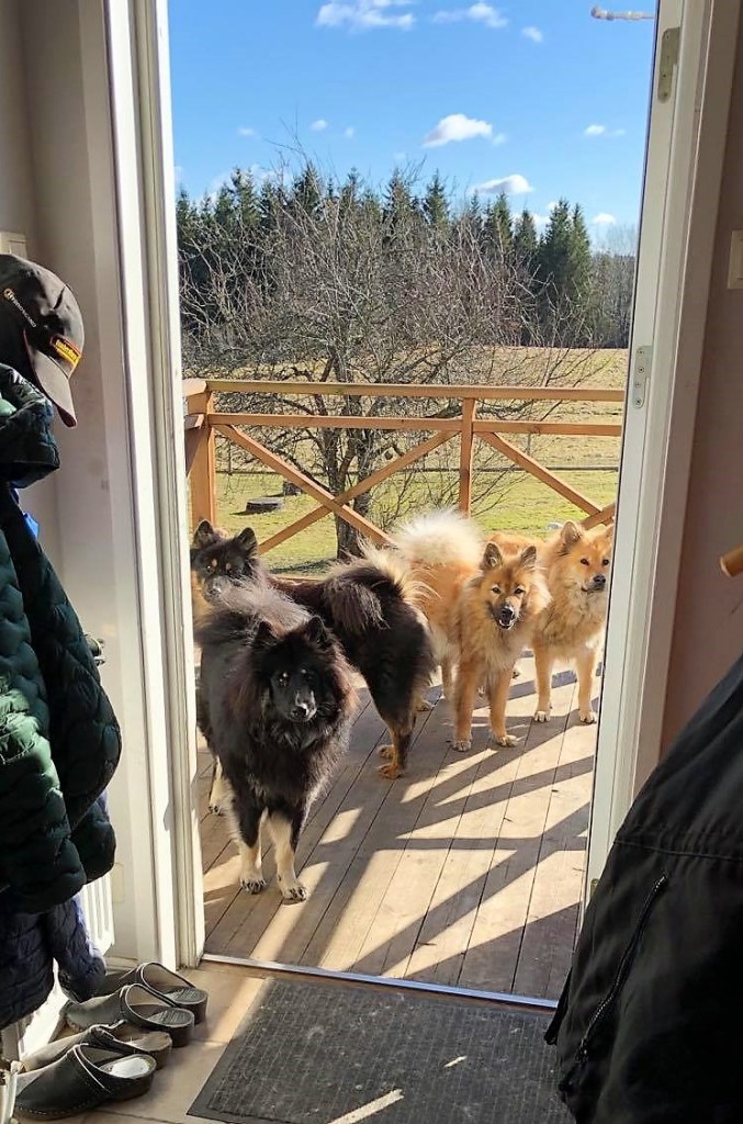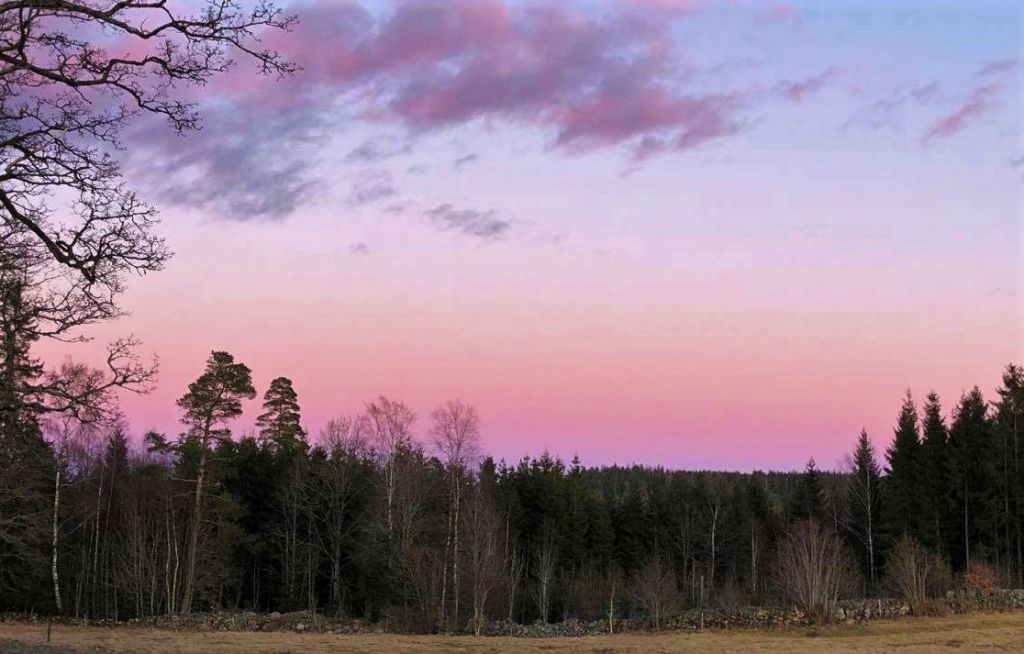 Japp, en öppen ytterdörr är ett lika bra vårtecken som något annat även om det bara handlar om 10 minuter ibland 😉 . Men tjejerna älskar detta att kunna gå ut och in som dom vill och matte här likaså, sparar x antal dörröppningar om man nu säger så 😉 . Och dessa vackra soliga dagar leder ofta till kalla nätter och därmed färgrika solnedgångar 🙂