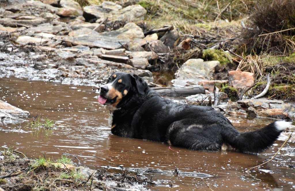 Precis, bad i alla dess former! Allt från vattenpölar, diken till sjöar, allt funkar som ni ser. Kanske inte alltid till mattarnas stora förtjusning men skitiga hundar är lyckliga hundar 😉 😀