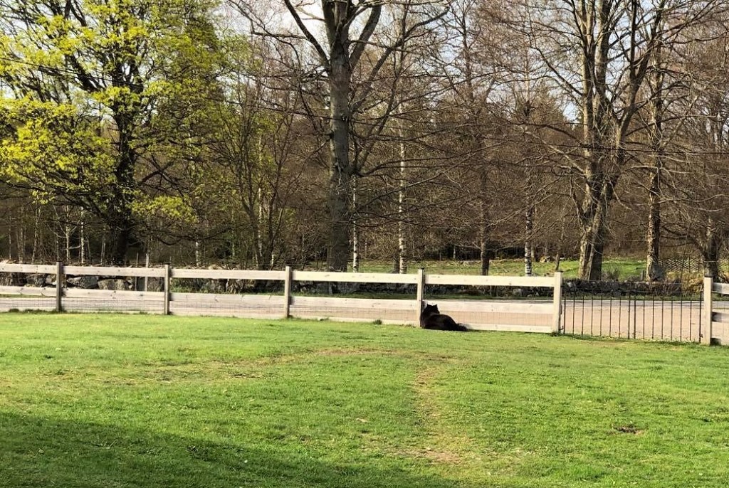 Det tog sisådär en minut för Malou efter avslutad gräsklippning att se till att ordningen återställdes i hennes värld, alltså att återigen se till att dekorera gräsmattan 😉 😀