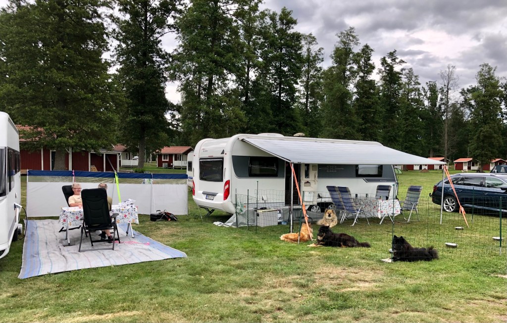 Här trivs vi bara bäst! Lugn och trivsam camping i vackra omgivningar, kan verkligen inte klaga. Hundbadet har givetvis redan testats och det med beröm godkänt 😉