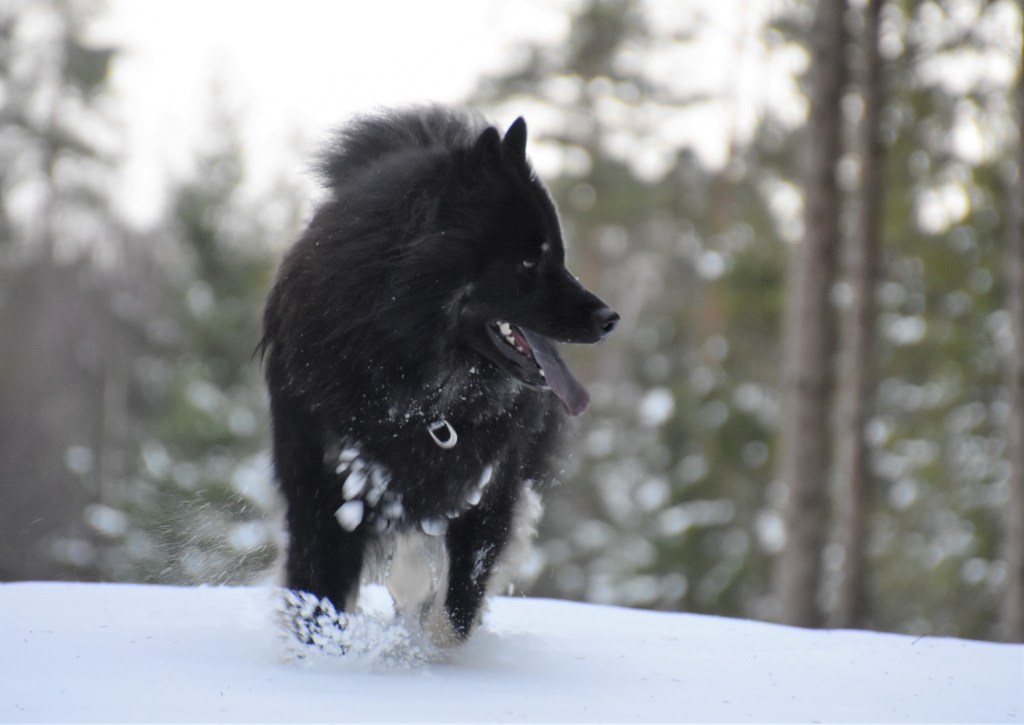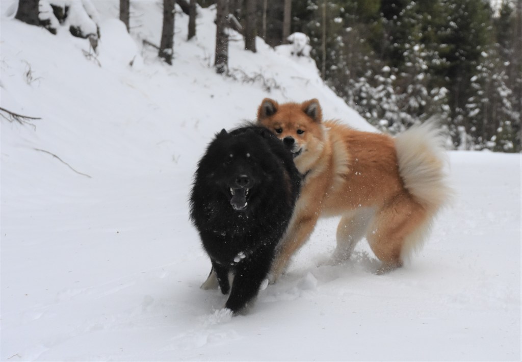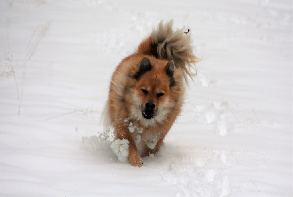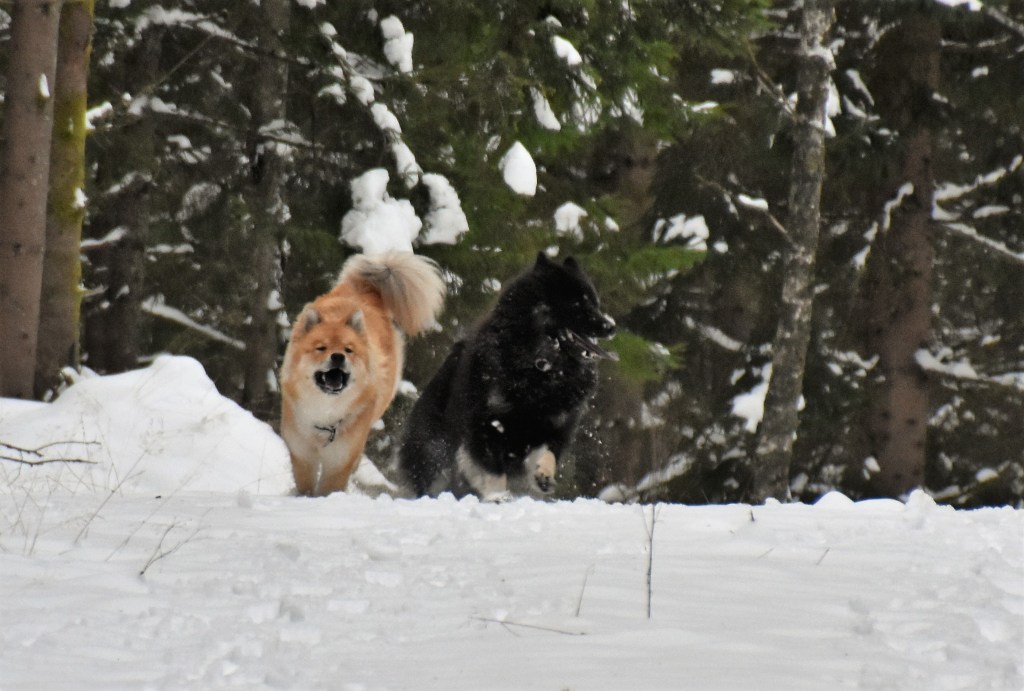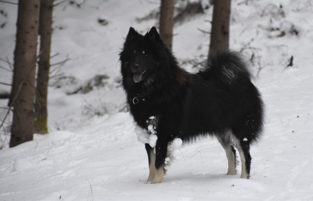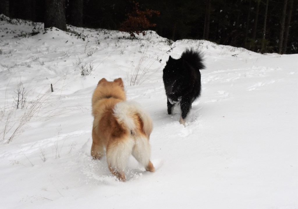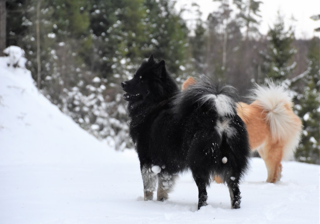 Snö i all ära men det finns en sak som kan bli lite besvärligt och det är de där jäkla snöbollarna som fastnar i tjejernas päls och det speciellt när det som idag är lite kramsnö. Bollar i massor undertill, blir nästan lite som tyngdvikter faktiskt 😉 . Något som gör att promenaden givetvis blir ännu mera energikrävande även om jag försöker plocka bort dem allteftersom 🙂