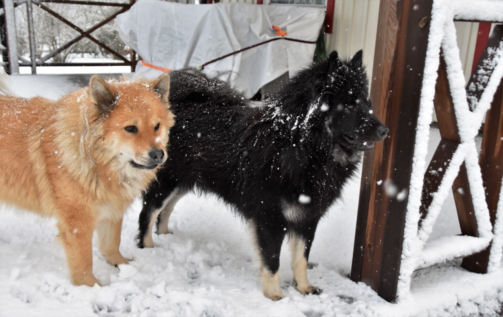 Vi har även fått lite mer snö idag som ni ser, kunde väl egentligen kvittat men den åsikten får nog stå för mig skulle jag tro, tjejerna däremot verkligen älskar detta vinterväder 🙂