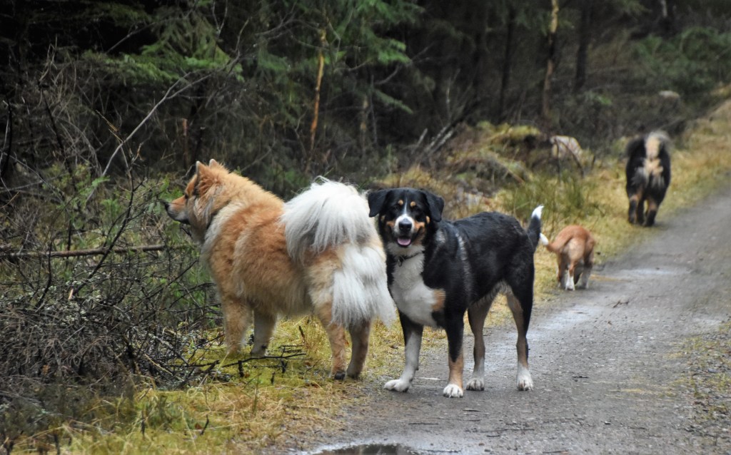 Det var allt några veckor sedan jag och Mari fick ihop våra scheman och kunde ta en flockprommis men idag fick vi äntligen till det 😉 . Trots blåst och givetvis regn i perioder så blev det en lång härlig tur i skogen och alla 11 tjejer njöt och vi tvåbenta likaså 🙂