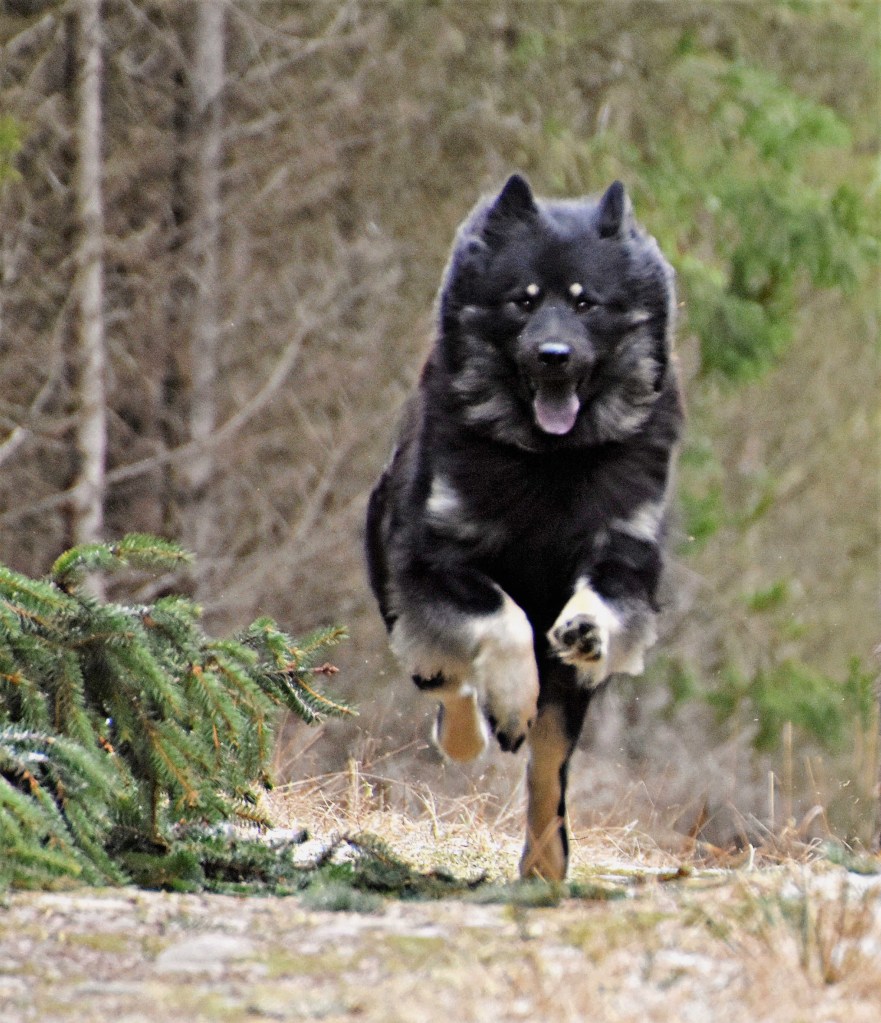 Har man som vi en ”Duracell-kanin” i flocken så vill det minsann till att vara alert på promenaderna. Att stå och fippla med kameran är inte att tänka på utan det vill till att hänga med i svängarna. Något som oftast betyder att fånga Malou i farten för detta med att ta det lugnt finns definitivt inte i hennes vokabulär 😉 . I dessa lägen så spelar det ingen som helst roll hur bra kamera eller vilka inställningar man än har utan det är bara att köra på och hoppas att något foto blir användbart och som det sägs, plötsligt händer det 😉 😀