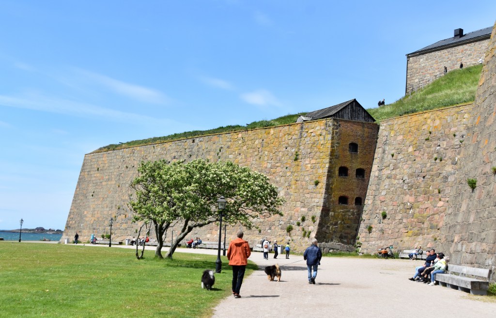 Som rubriken säger, i lördags tog vi med oss husvagnen till fina vännerna Malin & Anders i Hunnestad strax utanför Varberg. Vi var där redan på förmiddagen och efter lite gofika gav vi oss av till fästningen för en stärkande, läs blåsig 😉 , promenad 😉