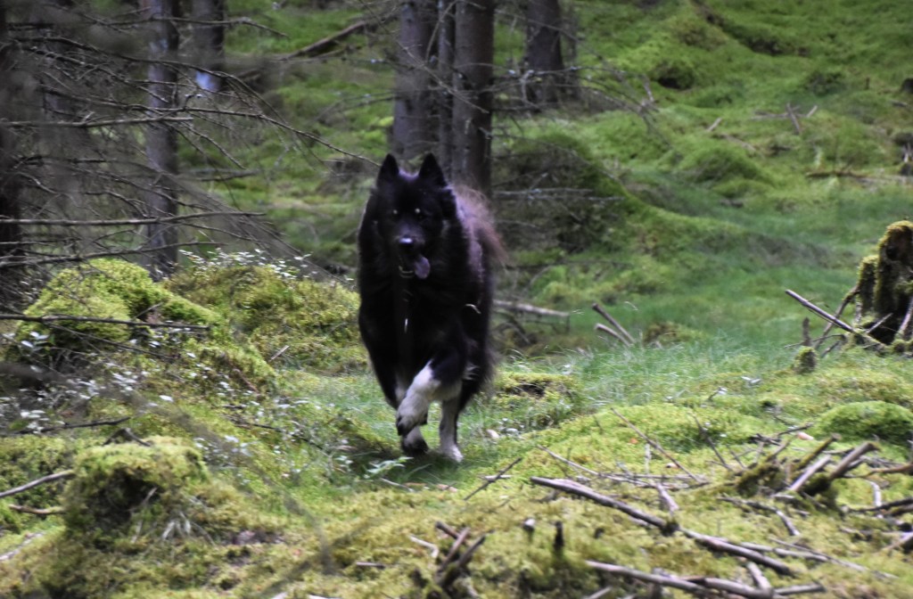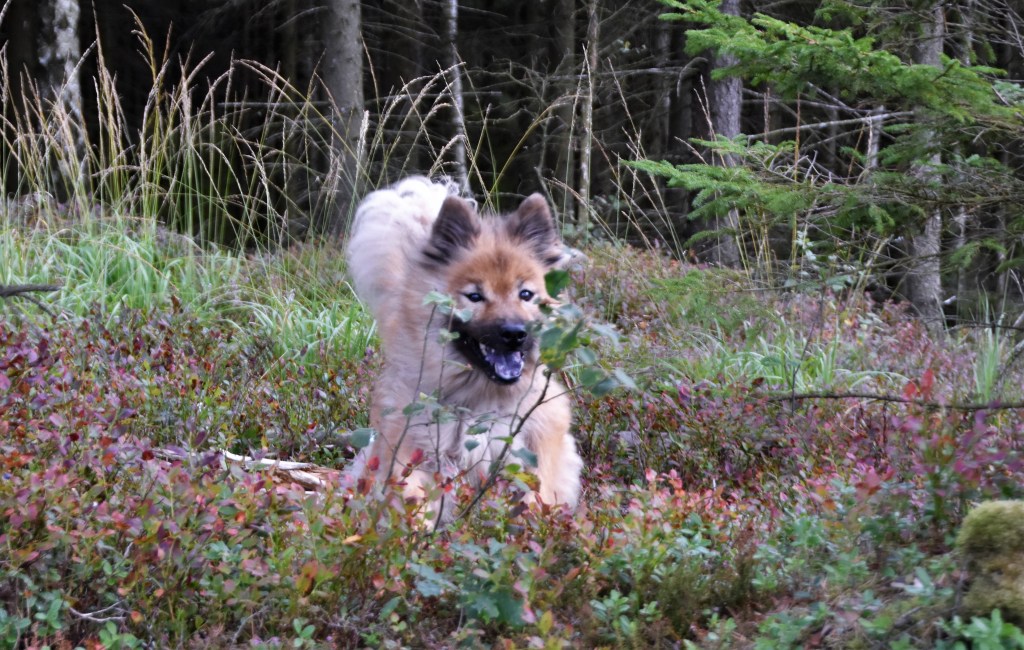 ..medan vi tvåbenta gick med näsan i backen och letade kantareller och det med gott resultat. Ca 1 kg fick följa med hem och sällskapa lövbiffen till middag, det ni 😉 🙂