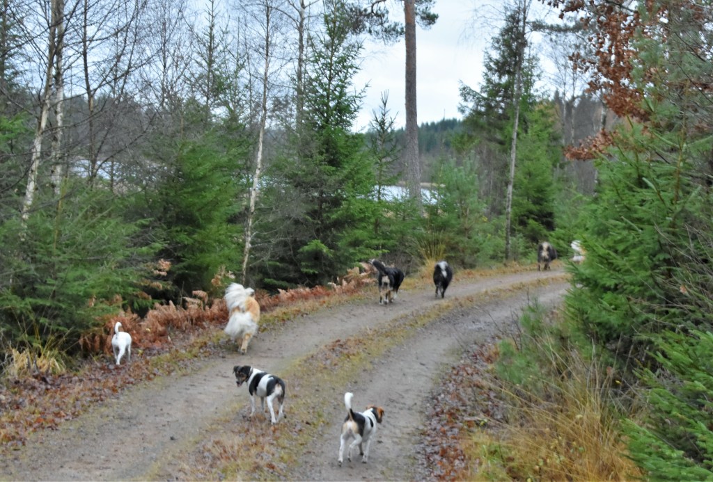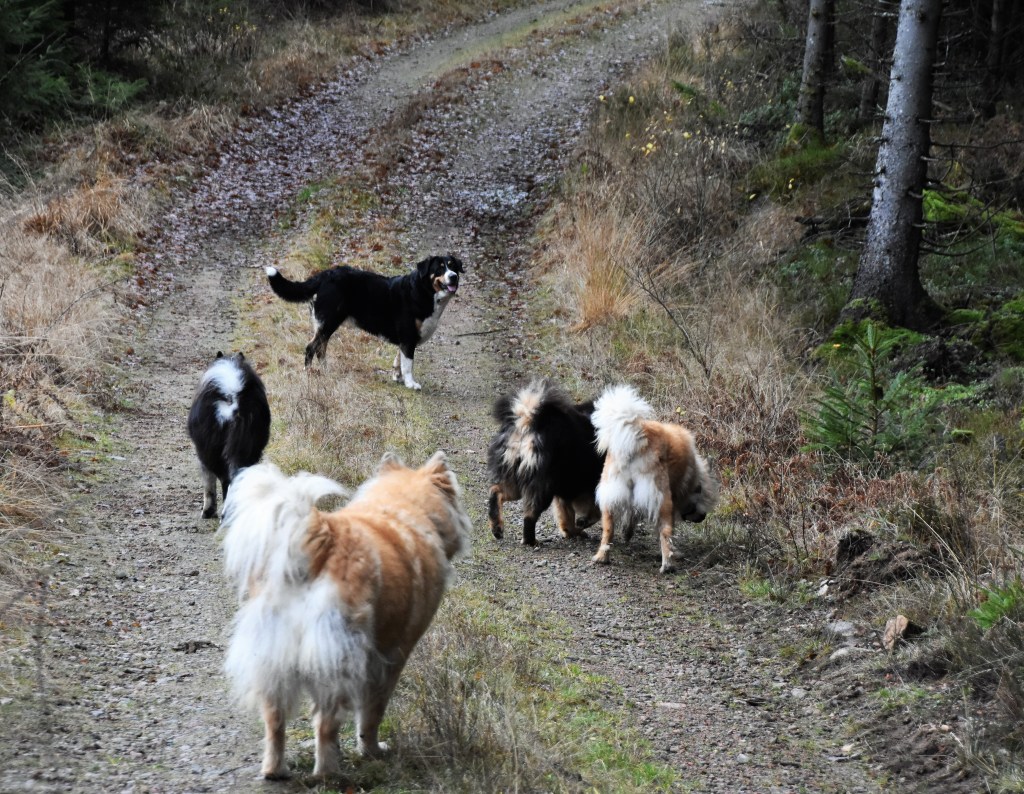 Och med det menar jag givetvis Malou, hon har definitivt tappat tempot på promenaderna och det syntes väldigt tydligt idag på vår flockpromenad med Mari & hennes flickor 🙂