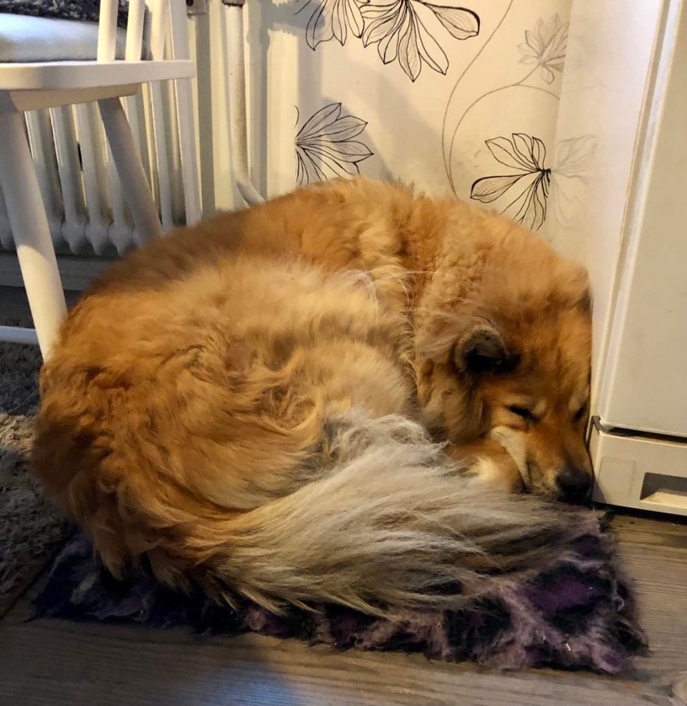 Som jag skrivit innan så är tjejerna väldigt dämpade efter sessans bortgång i måndags, så visst sörjer de henne och imorse blev jag nästan gråtfärdig när Tindra hade lagt sig på Zeldas fäll i köket. En fäll som bara varit sessans och som jag inte haft hjärta att ta bort än och det kändes precis som om Tindra lade sig där för att hon ville få lite tröst och vara nära sin vän som inte längre finns hos oss ❤